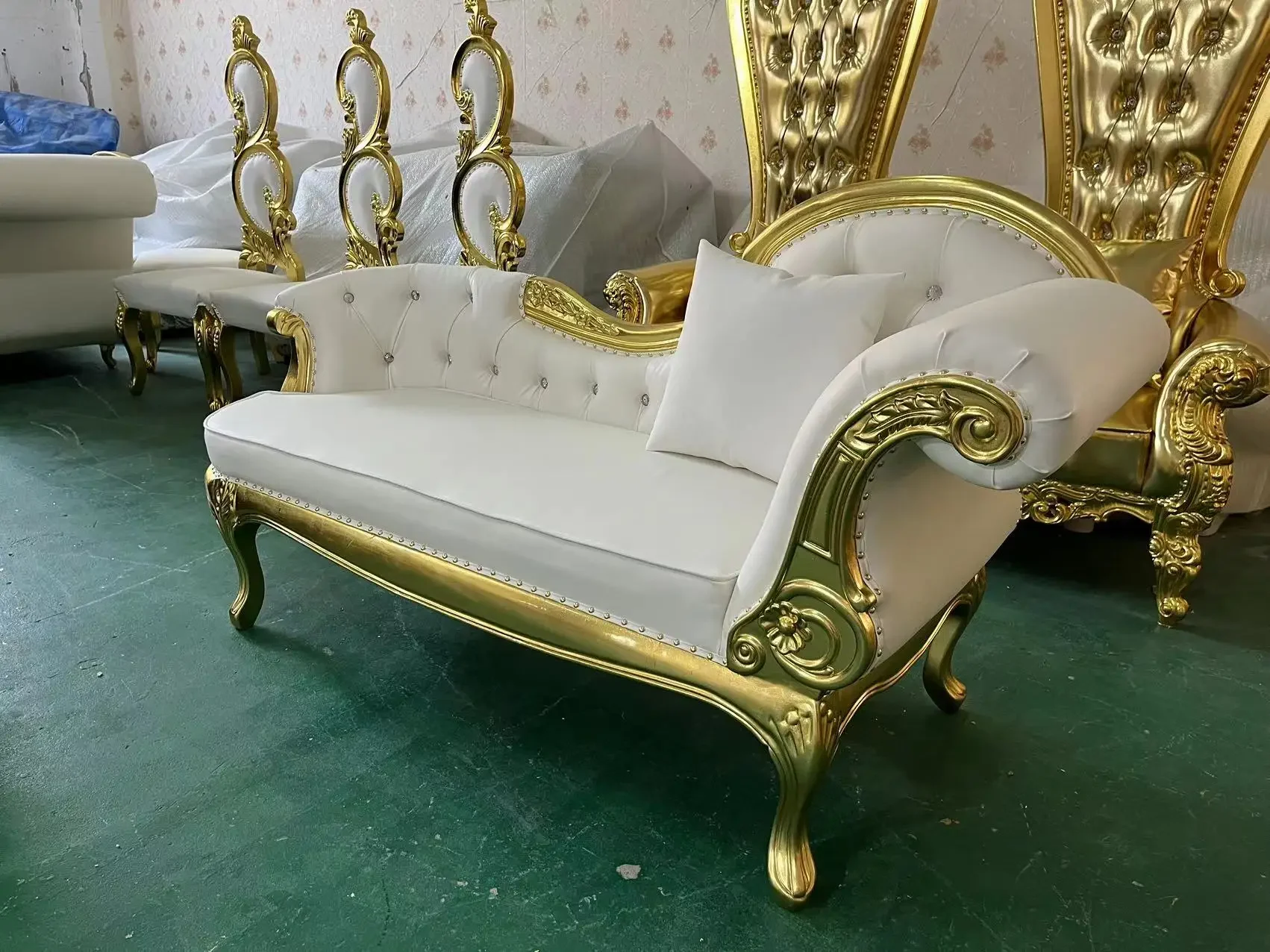 في الهواء الطلق داخلي الذهب منجد كلاسيكي كرسي صالة Loveseat مريحة أريكة العرش الملكي كراسي جلدية أريكة العرش الملكة
