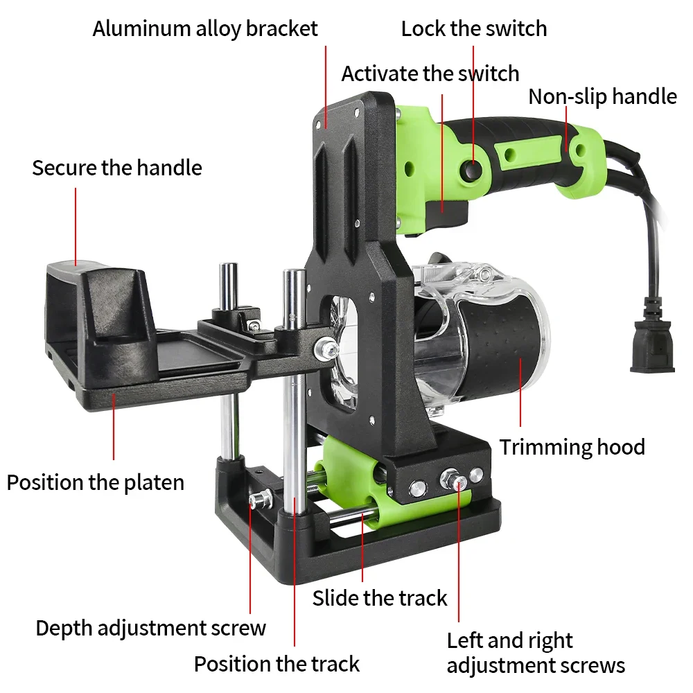 5. سبائك الألومنيوم ممتازة مصنوعة: هذا الدعم الخشب راوتر مصنوع من سبائك الألومنيوم عالية الجودة ، وهو خفيف الوزن ، لديه قوة عالية ، قوي ودائم