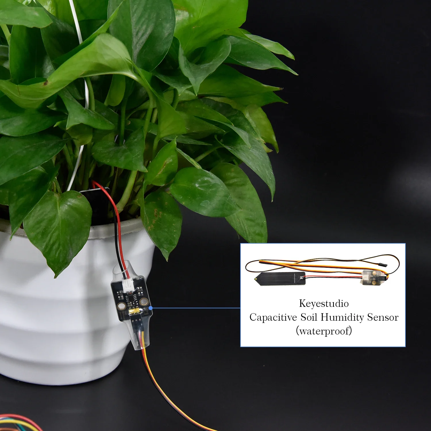 مجموعة سقي إلكترونية Keyestudio DIY لبرمجة لغة Arduino C زهور مائية أوتوماتيكية مع مستشعر رطوبة التربة