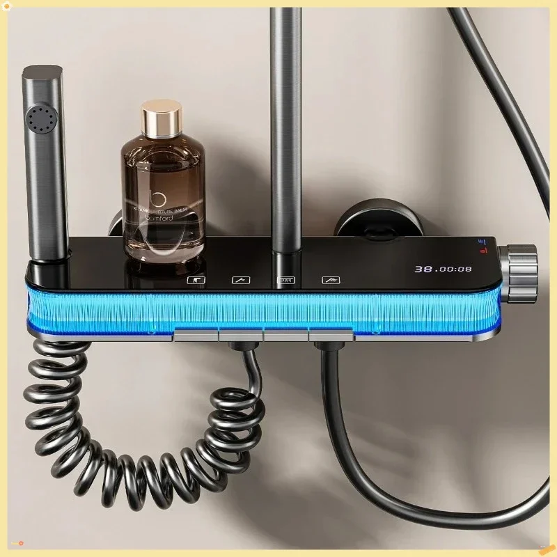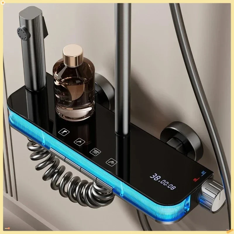 نظام دش فاخر مع ضوء محيط، مجموعة صنبور دش الحمام الرقمي الذكي، عرض درجة الحرارة، مجموعة دش الأمطار