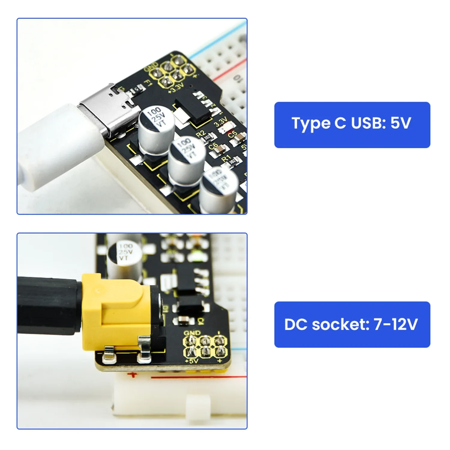 وحدة إمداد الطاقة Keyestudio من النوع C + لوحة توصيل 400 فتحة + أسلاك توصيل لمشاريع لوحة توصيل اردوينو
