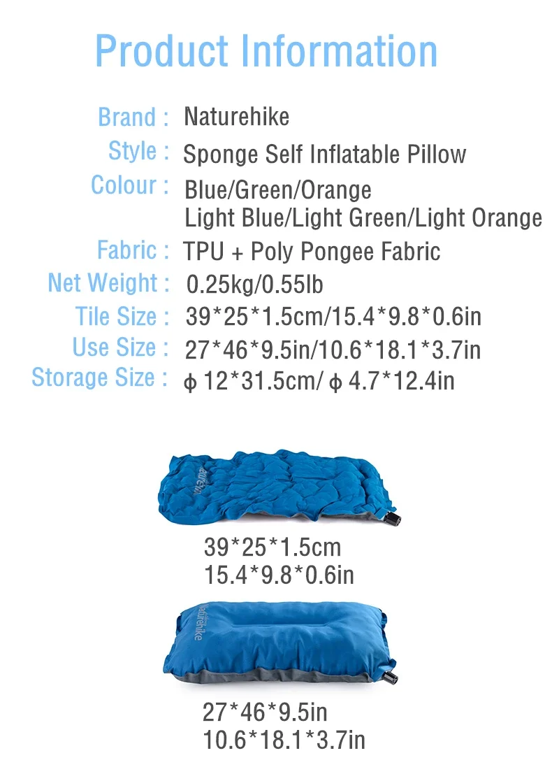 • النفخ الذاتي:لا داعي للقلق بشأن إحضار مضخة أو نفخ الوسادة يدويًا. فإنه ينتفخ تلقائيا عند الحاجة إليها.