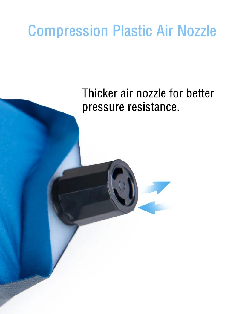 • النفخ الذاتي:لا داعي للقلق بشأن إحضار مضخة أو نفخ الوسادة يدويًا. فإنه ينتفخ تلقائيا عند الحاجة إليها.