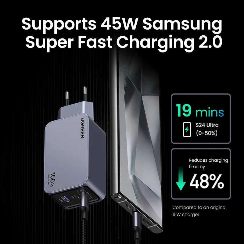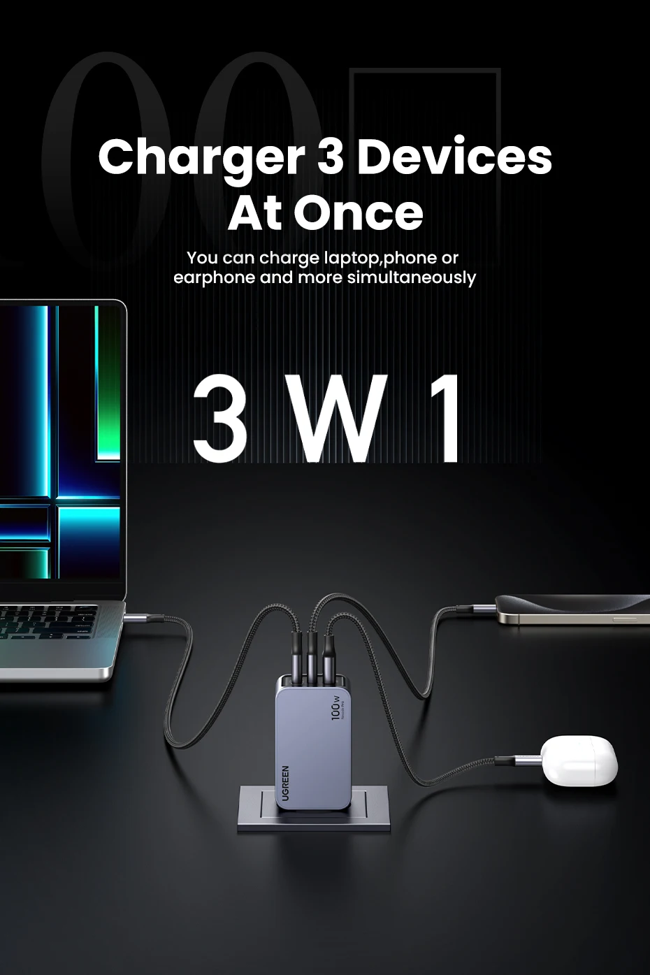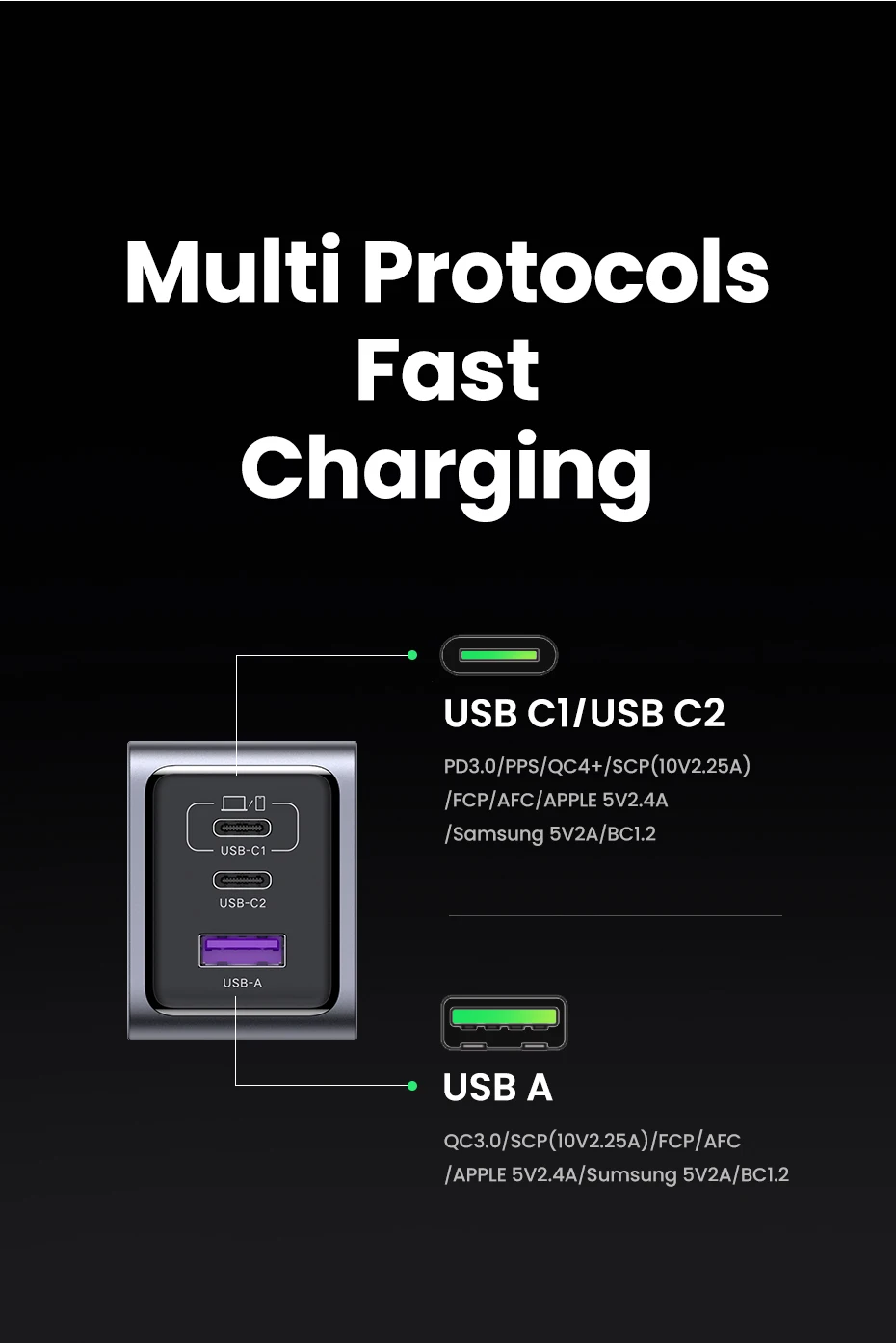 【Korean Plug】UGREEN 100W GaN Charger PD Fast USB C Charger QC4.0 3.0 Quick Charge For Macbook Laptop Tablet iPhone 17 16 Pro