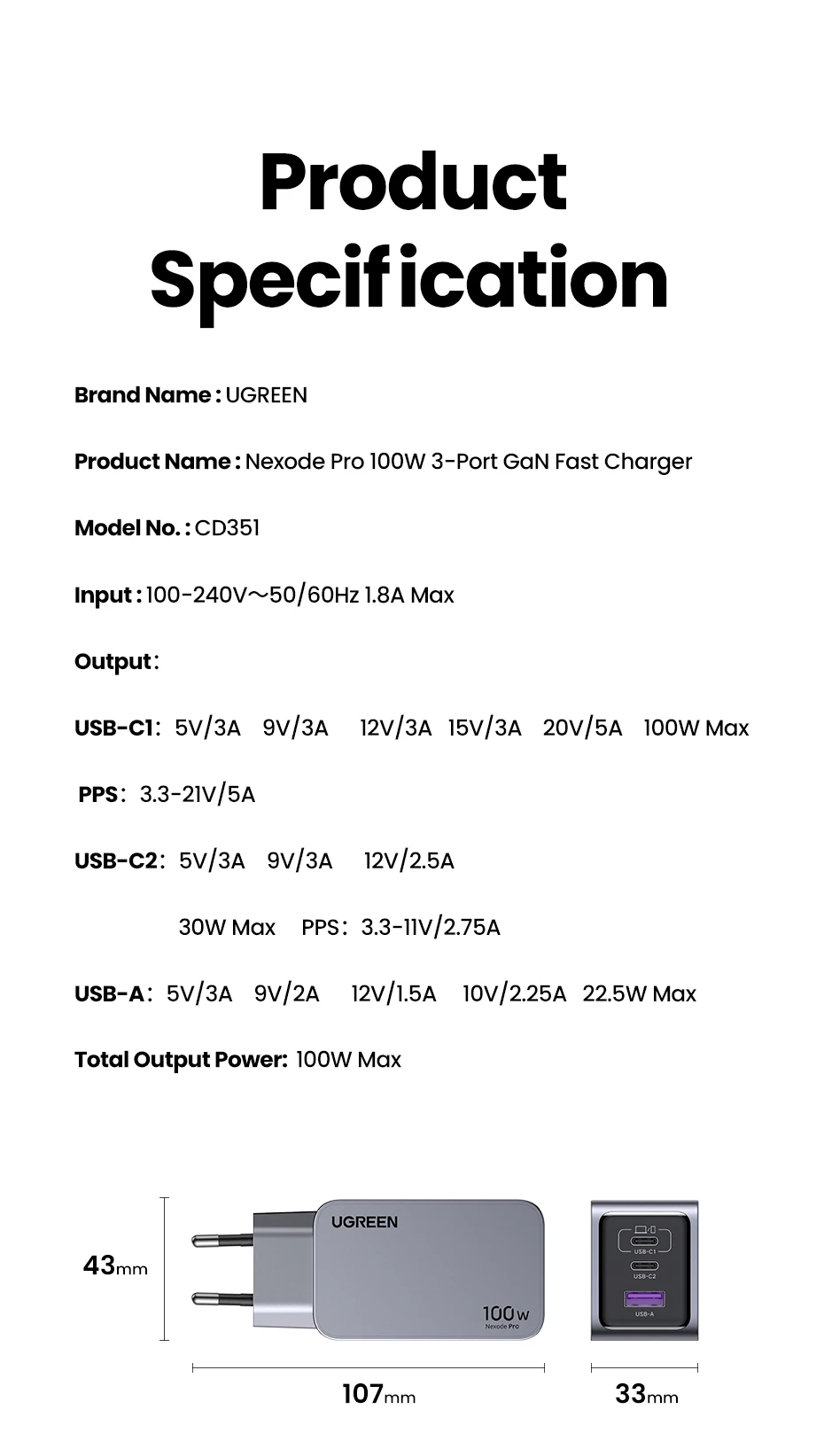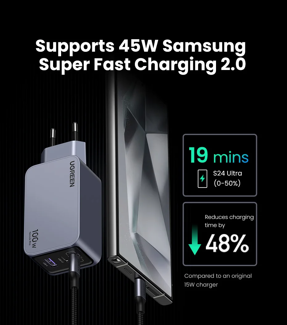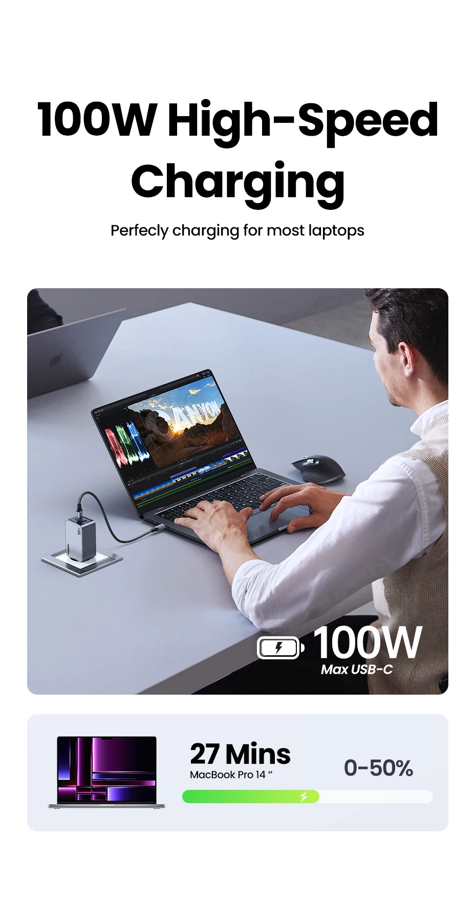 【Korean Plug】UGREEN 100W GaN Charger PD Fast USB C Charger QC4.0 3.0 Quick Charge For Macbook Laptop Tablet iPhone 17 16 Pro