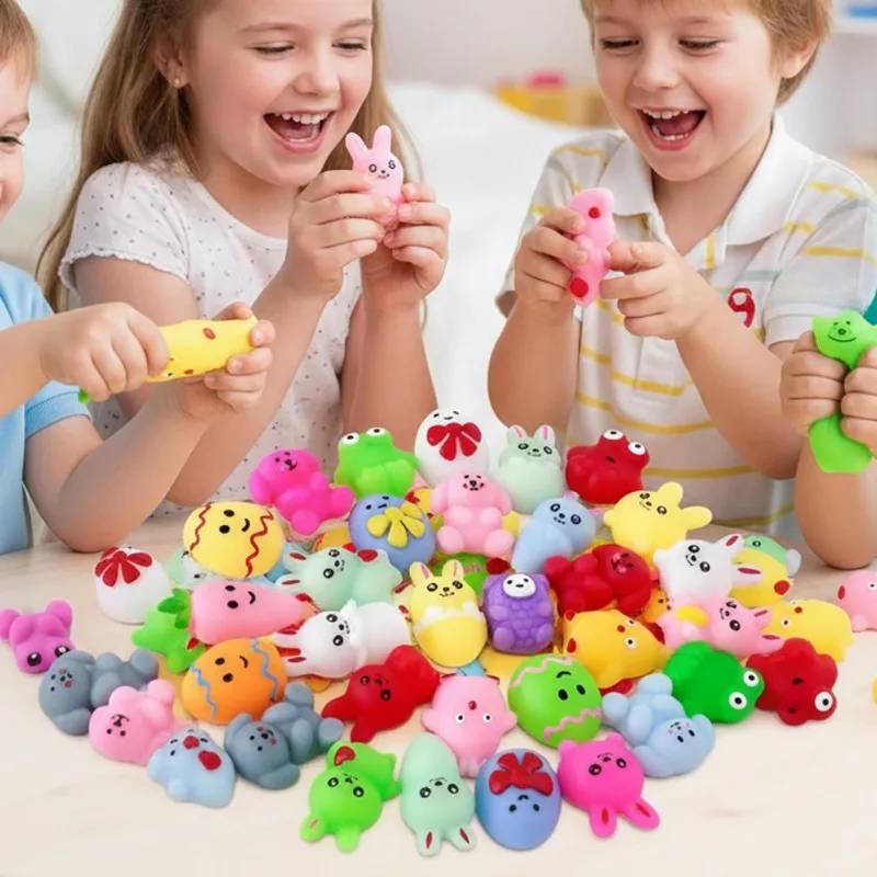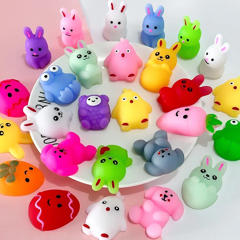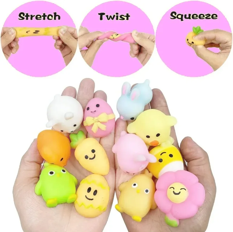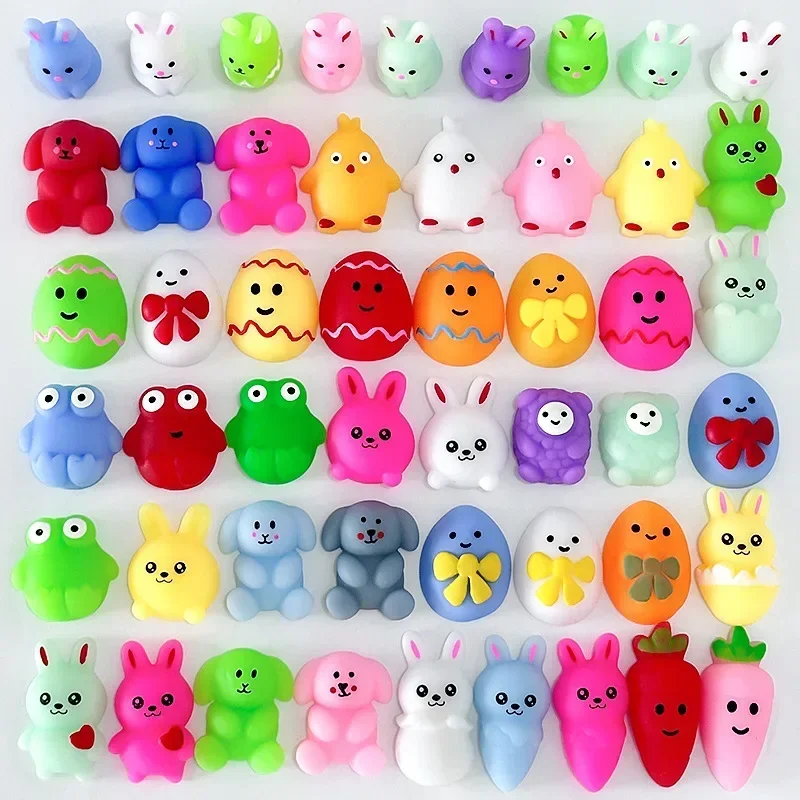 1-100PCS Easter Squishy Stress Relief Toys Mini Egg Cute Bunny Rice Cake Animal Sensory Fidget Toys Basket Stuffers Gifts