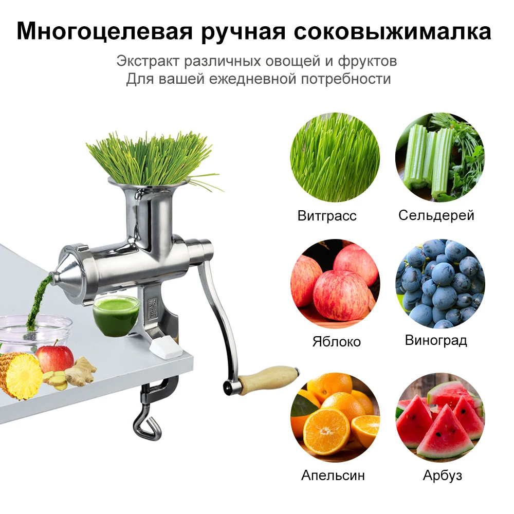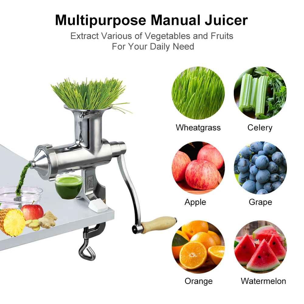 100% Hand Stainless Steel Wheatgrass Manual Juicer Auger Slow Squeezer Vegetables Fruit Citrus Juice Extractor Machine