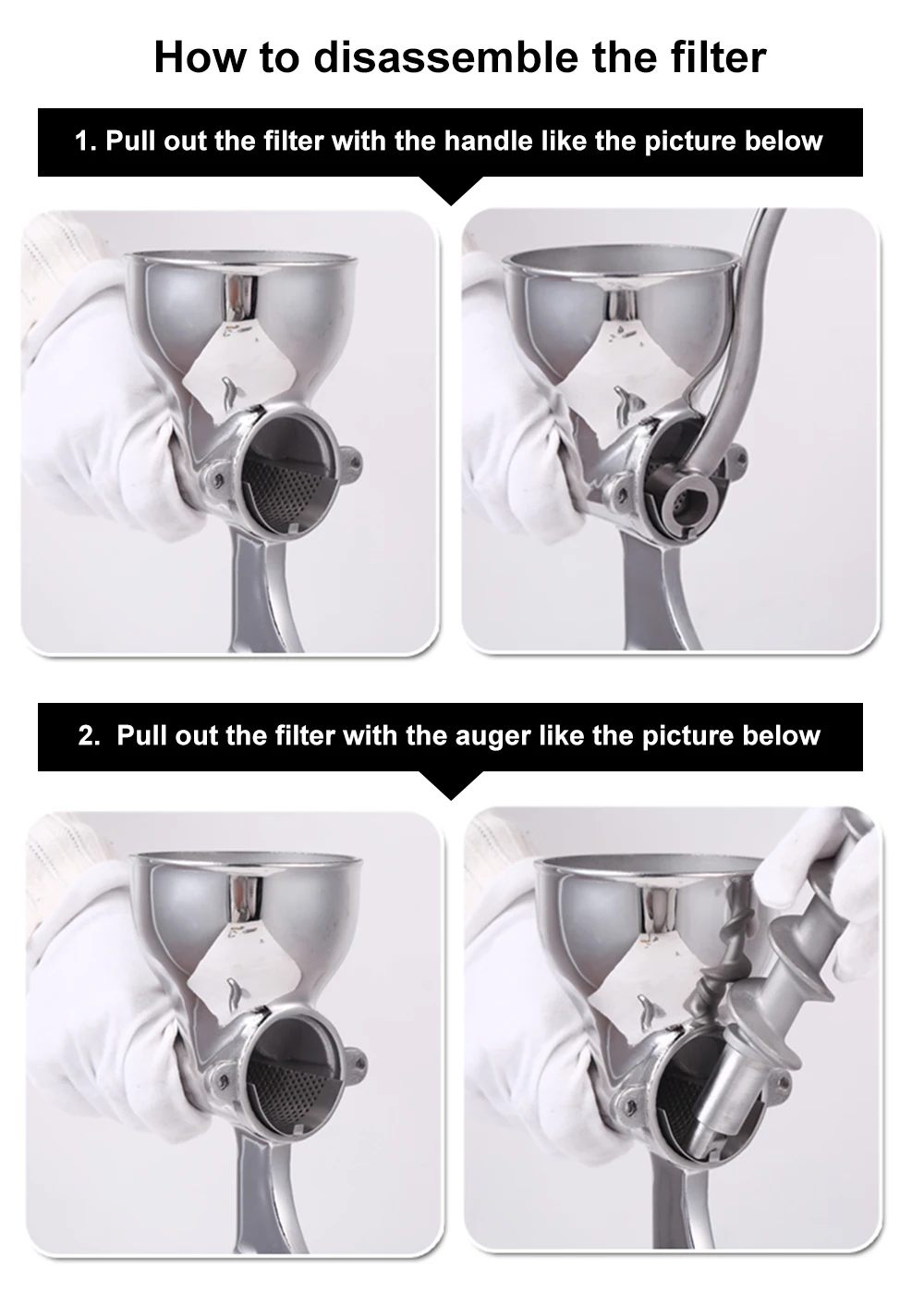 Squeeze the juice in hand low speed screw way.
