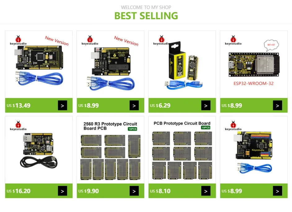 This kit includes 10 PCS of keyestudio MEGA 2560 prototype circuit board PCB.
