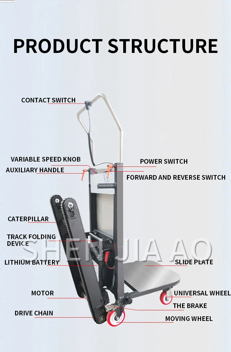 120kg Electric Stair Climbing Car, Hand Trolley Climbing Cart Crawler-type Up And Down Stair Climber Folding Hand Trolley