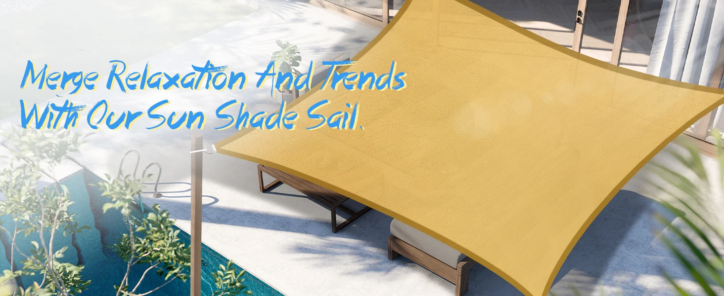 UV PROTECTION & BREATHABLE:The shade sail is made of High Density Polyethylene fabric,which has a good shading effect.It can effectively block harmful UV rays from the sun, preventing your skin from being damaged by the sun. Permeable fabric allows air to pass freely so you can stay cool