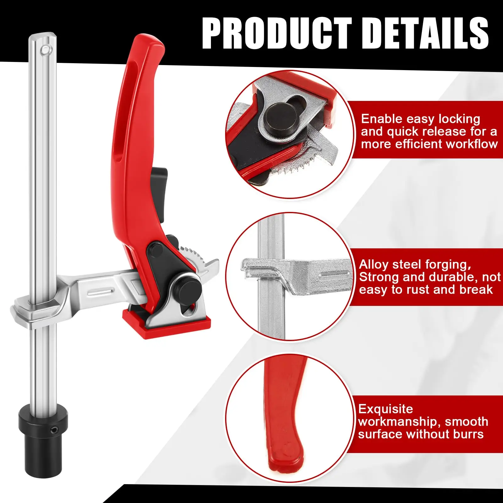 1.High Quality – Made of high quality Cr-V steel with steel pads, this clamp is durable, stable, wear resistant for long time use.
