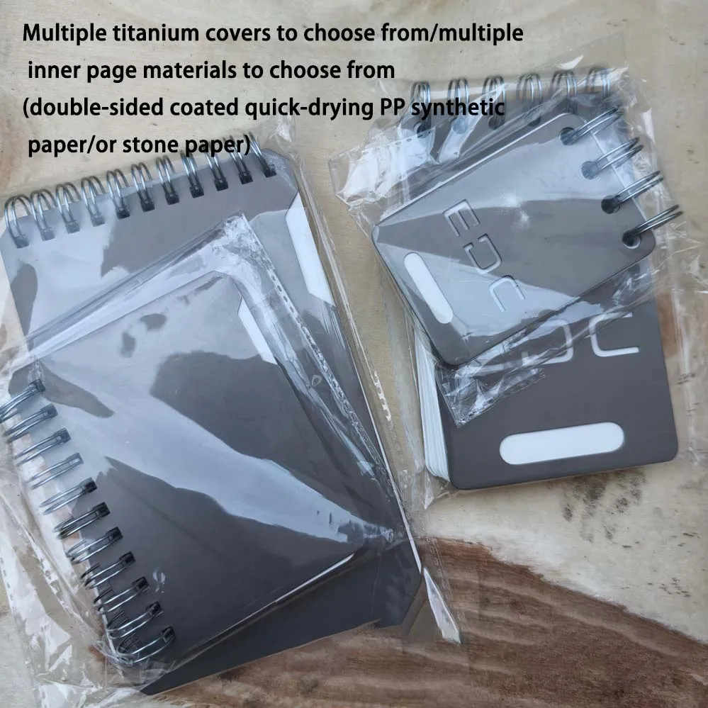 1PC Armored Titanium Alloy EDC Pocket Notebook With Quick-drying PP Synthetic Paper And Replaceable Refills