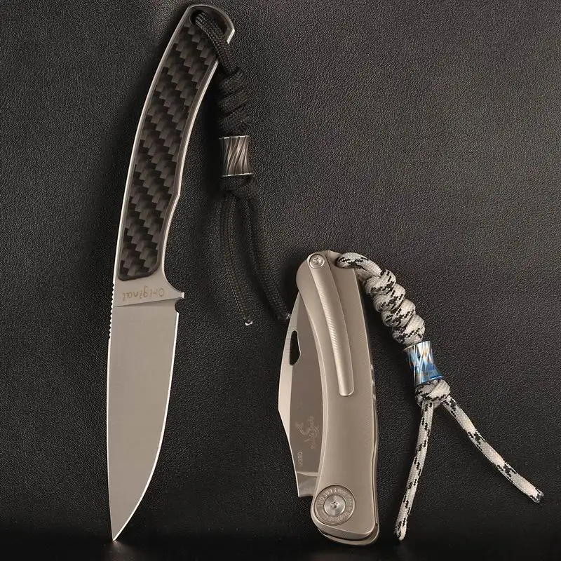 1PC EDC Outdoor Pocket Tool Titanium Alloy Holy Grail Knife Bead Paracord Bead Folding Knife Straight Knife Pendant
