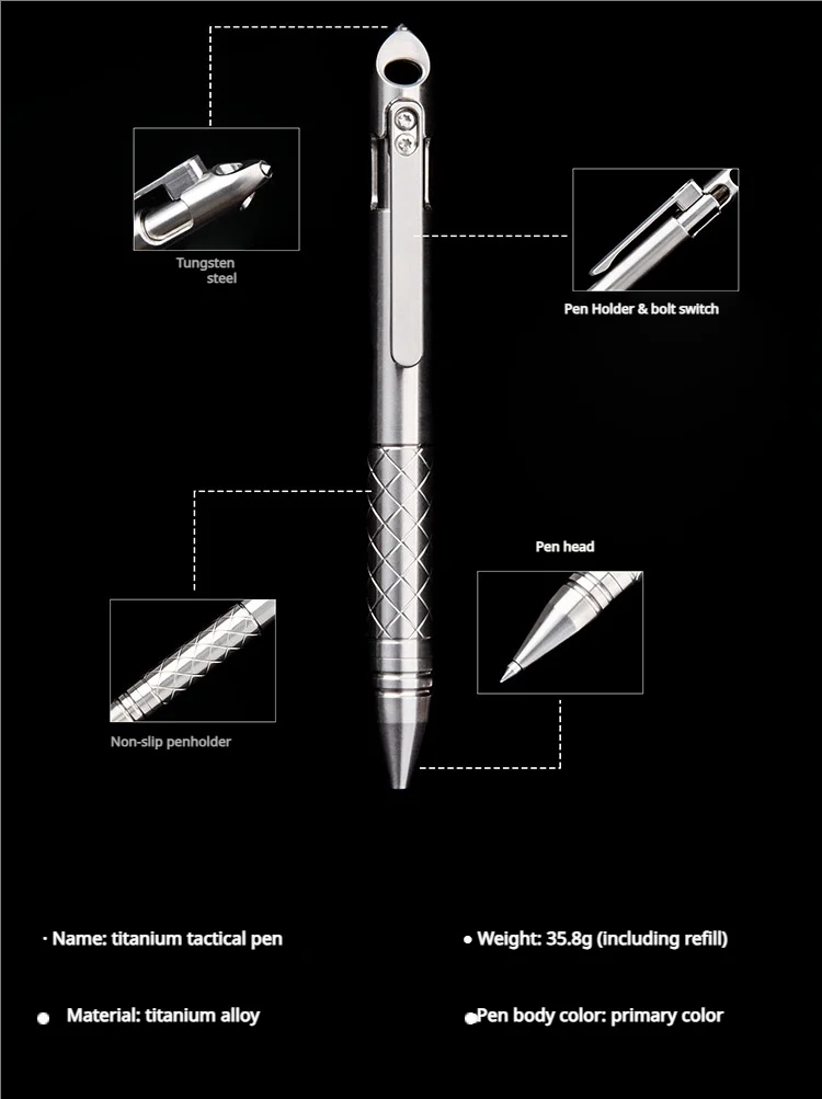 1PC EDC Outdoor Pocket Tool Titanium Alloy Tactical Pen Business Office Writing Signing Pen Push Pen