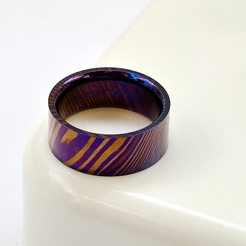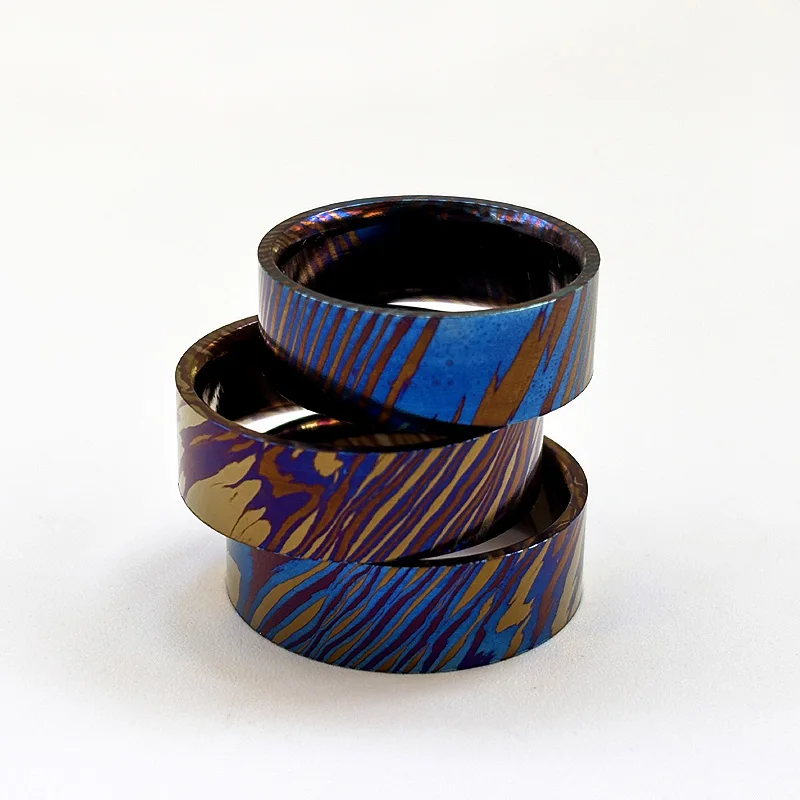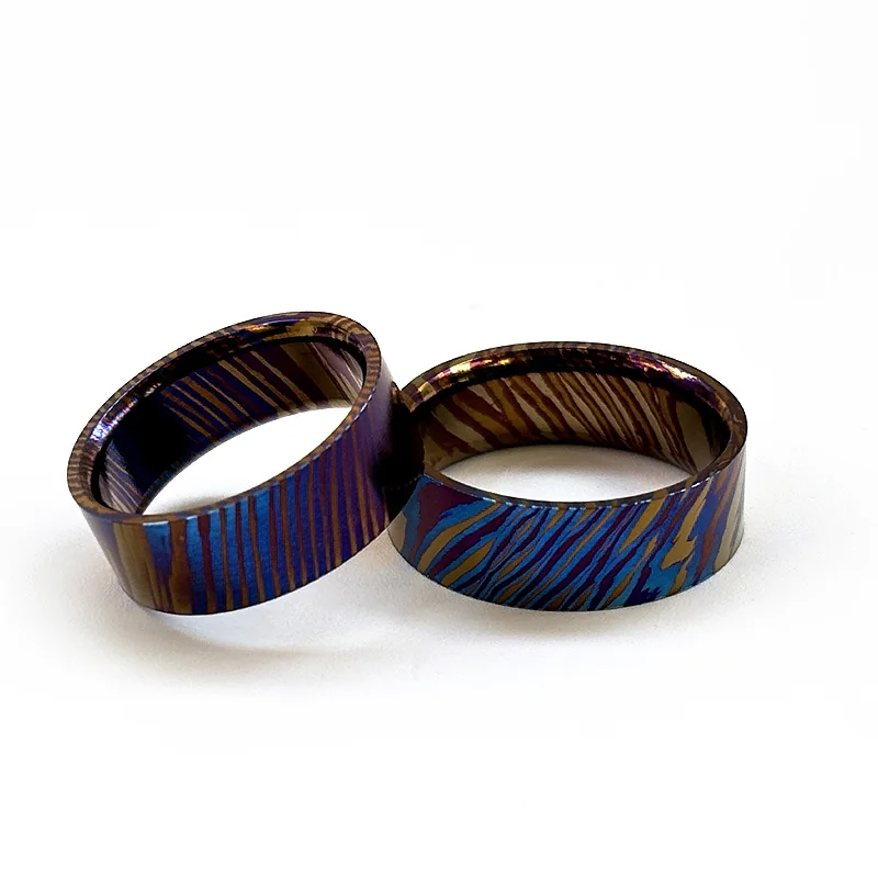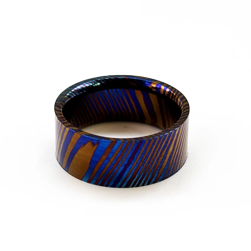 Diameter (4 options): 16mm, 18mm, 20mm, 22mm(Each piece has a unique Damascus pattern due to the random nature of the titanium Damascus process)