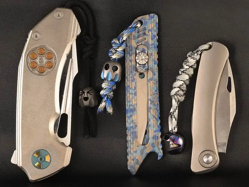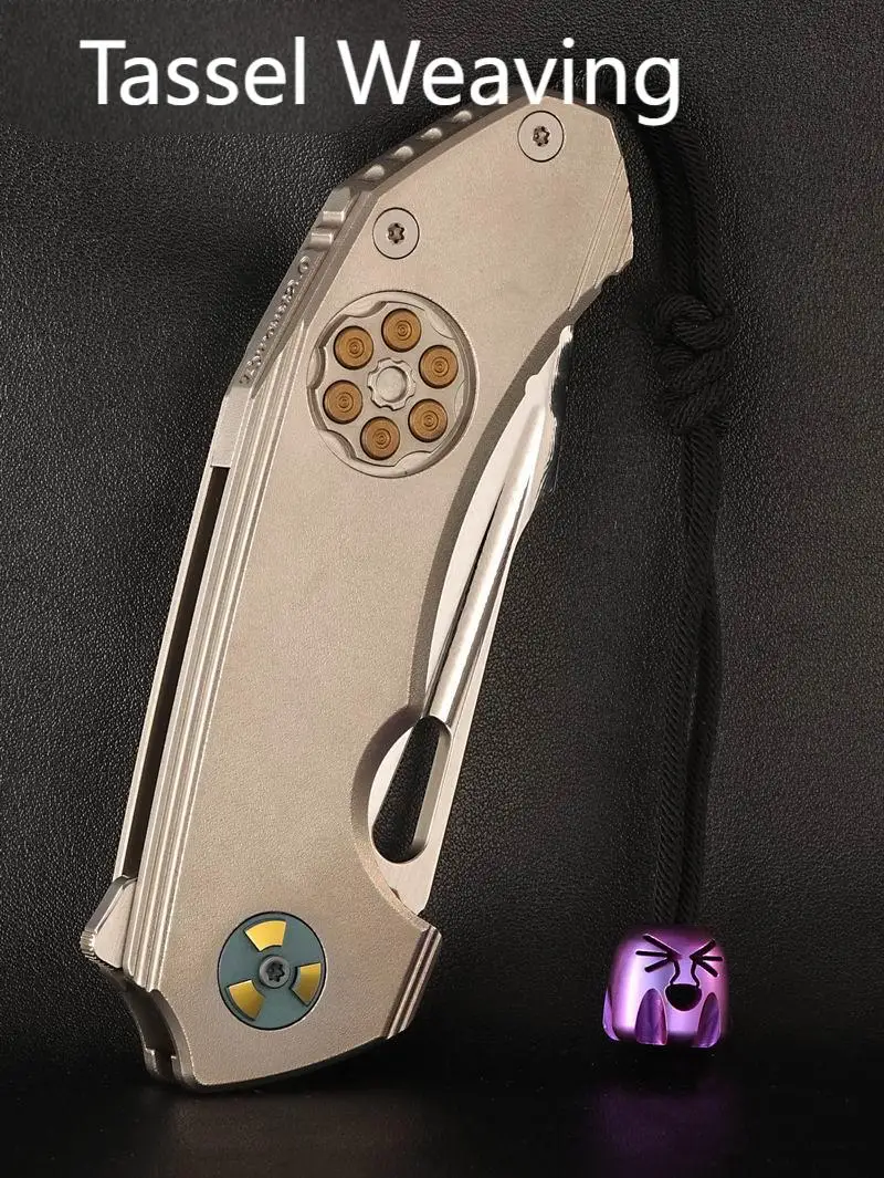 1PC Titanium game C model knife bead EDC pocket tool DIY Paracord bead folding knife hanging bead