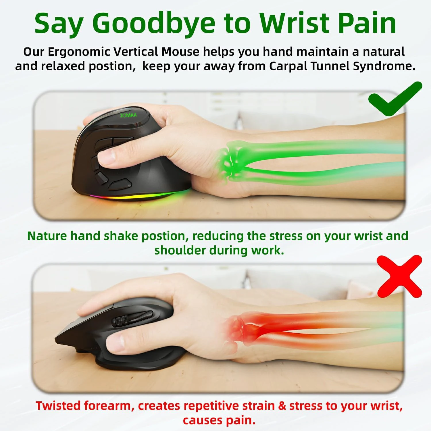 • Superior Ergonomics Vertical Mouse