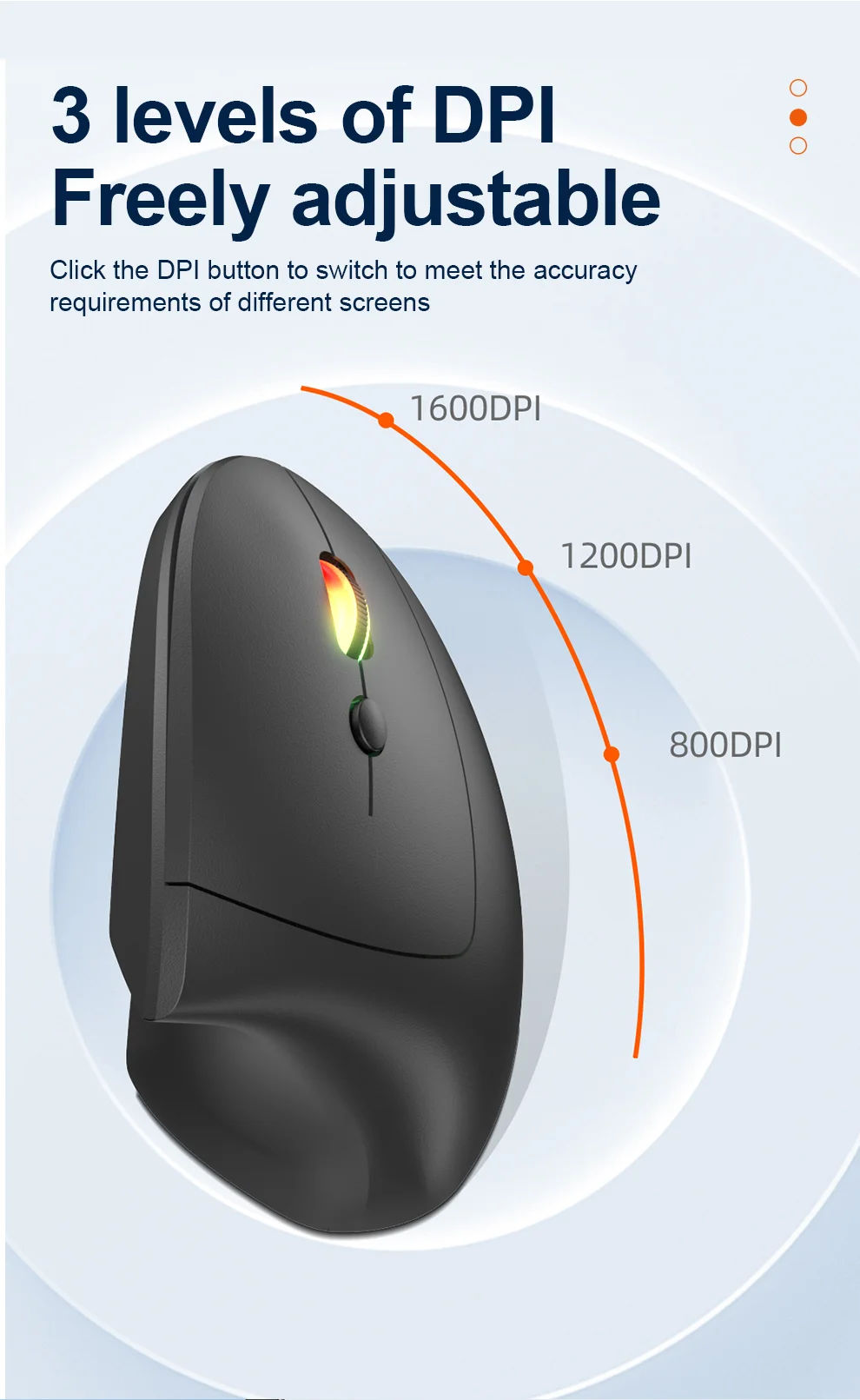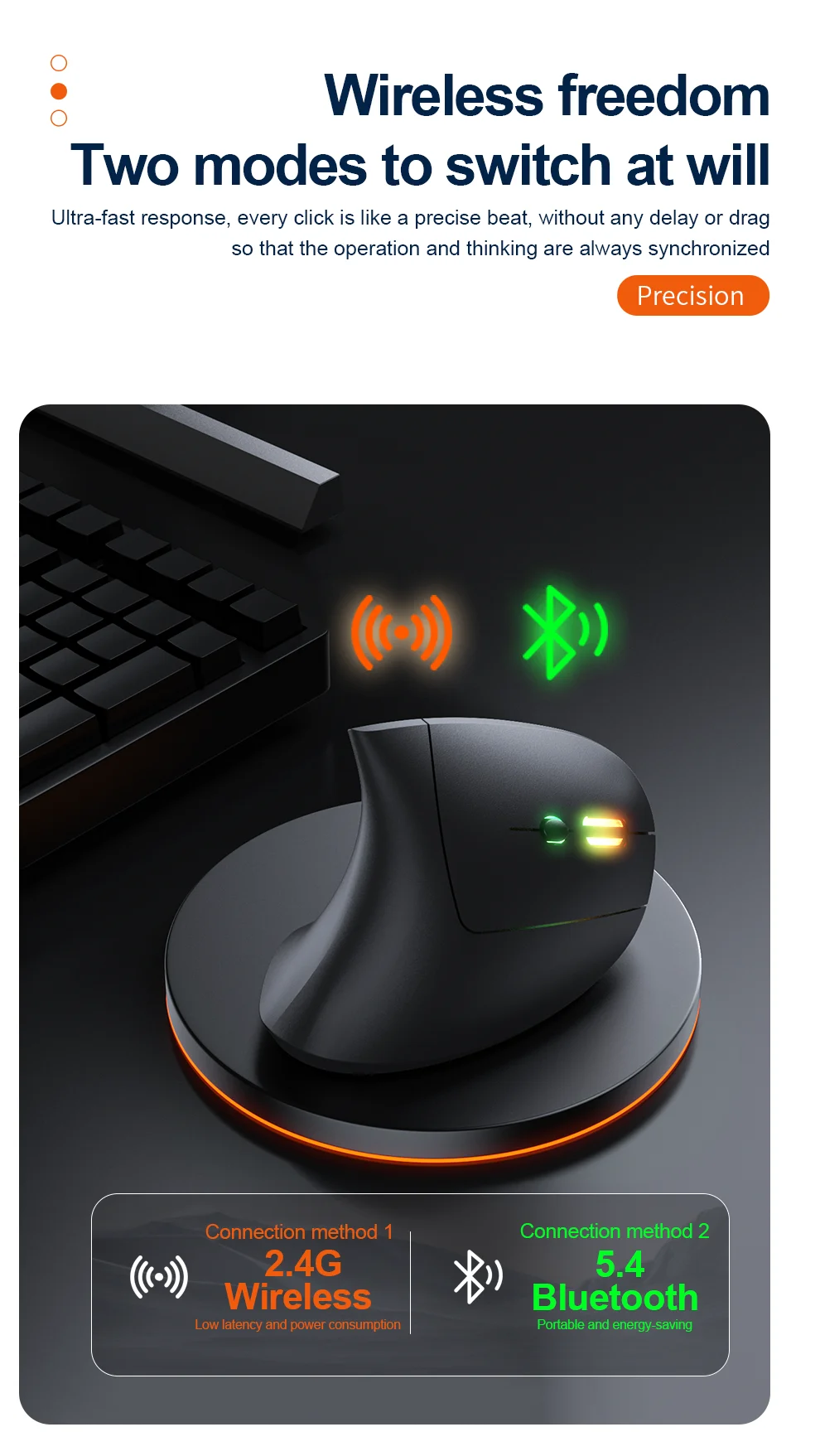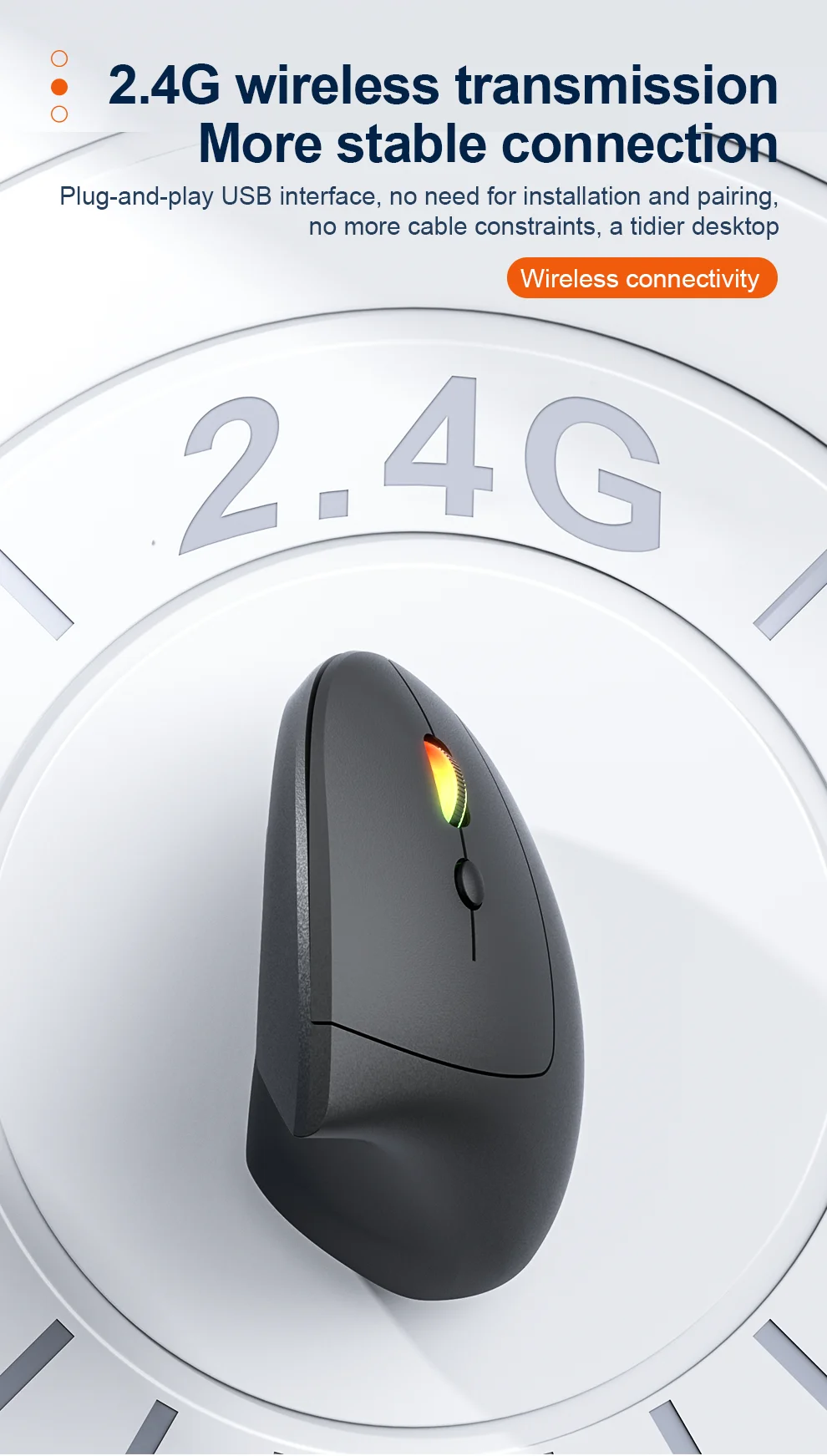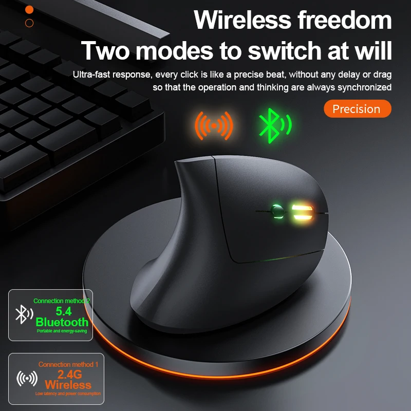 Jomaa RGB Backlit Speed Roller Wireless Vertical Mouse with Function Adjustment Knob Bluetooth USB Ergonomic Mice Slient Click