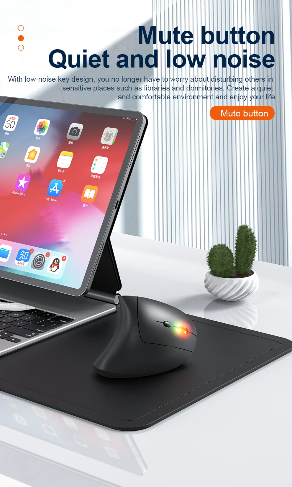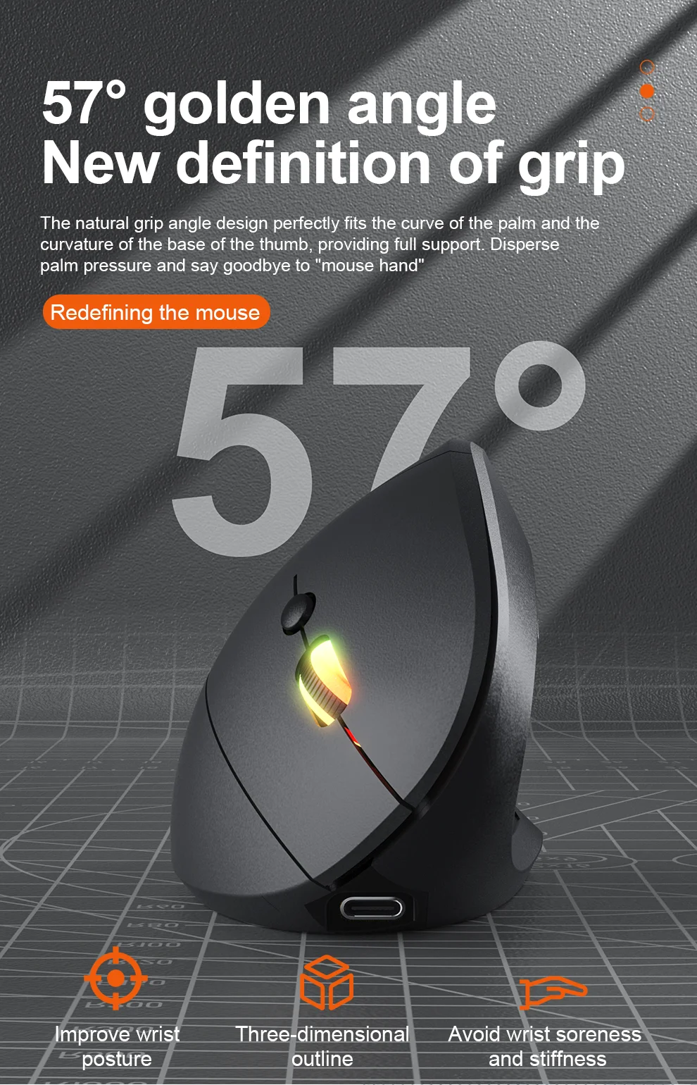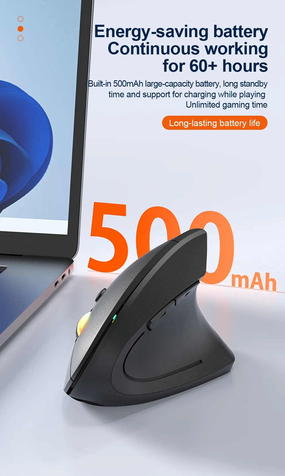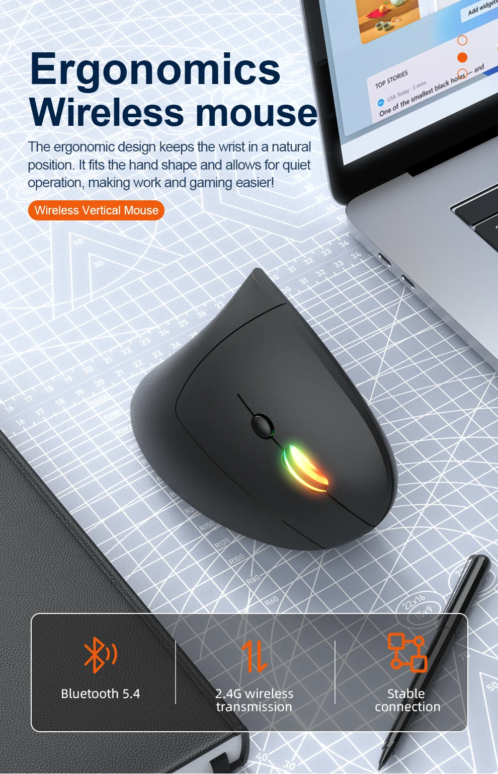 Jomaa RGB Backlit Speed Roller Wireless Vertical Mouse with Function Adjustment Knob Bluetooth USB Ergonomic Mice Slient Click
