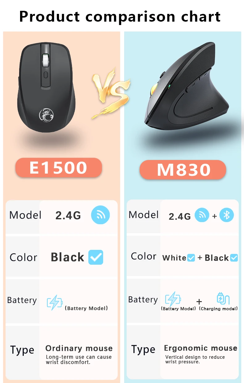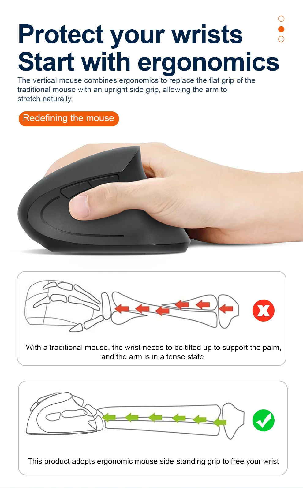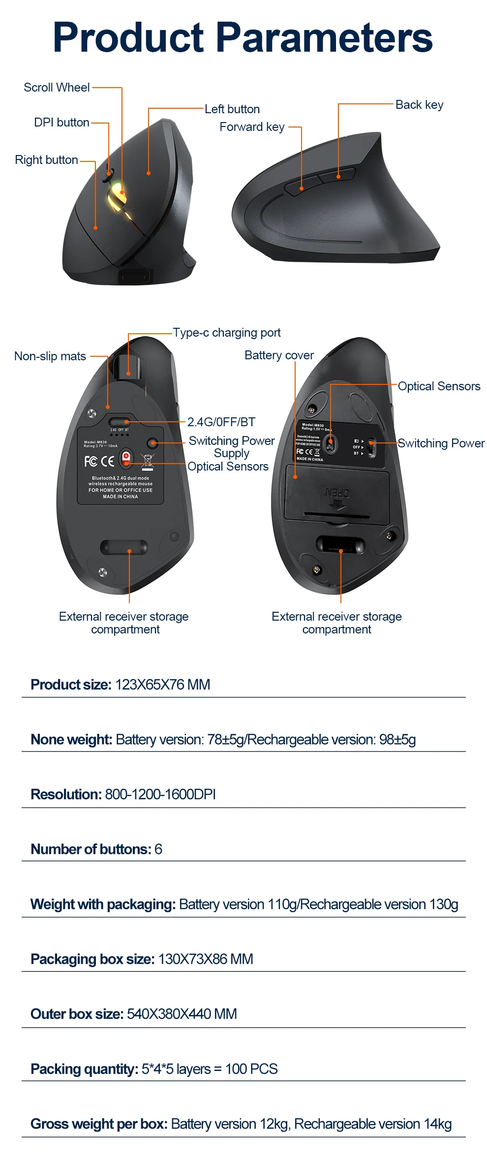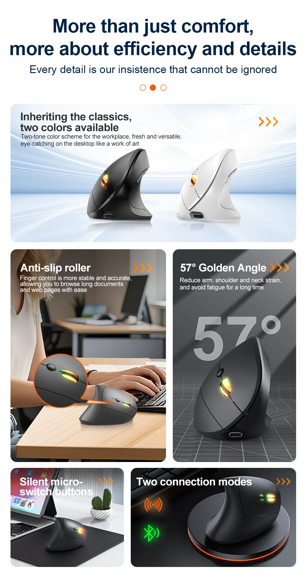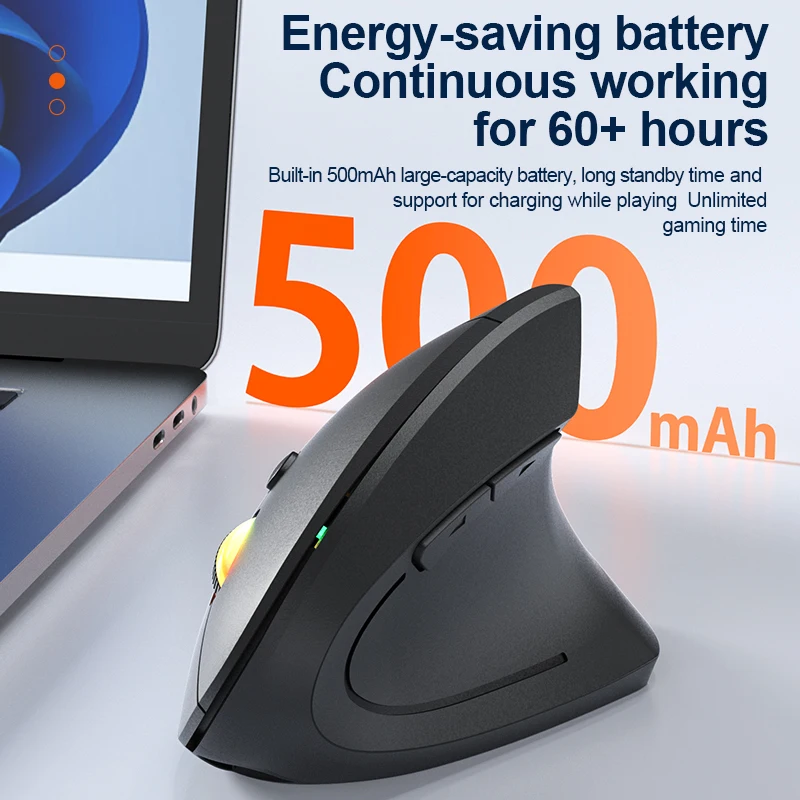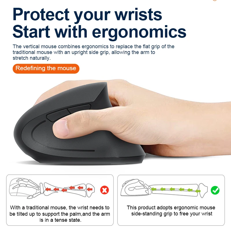 2.4GHz Bluetooth Wireless Mouse Rechargeable Vertical Mice Ergonomic 3Adjustable 1600DPI 6Buttons for Laptop PC Computer Desktop