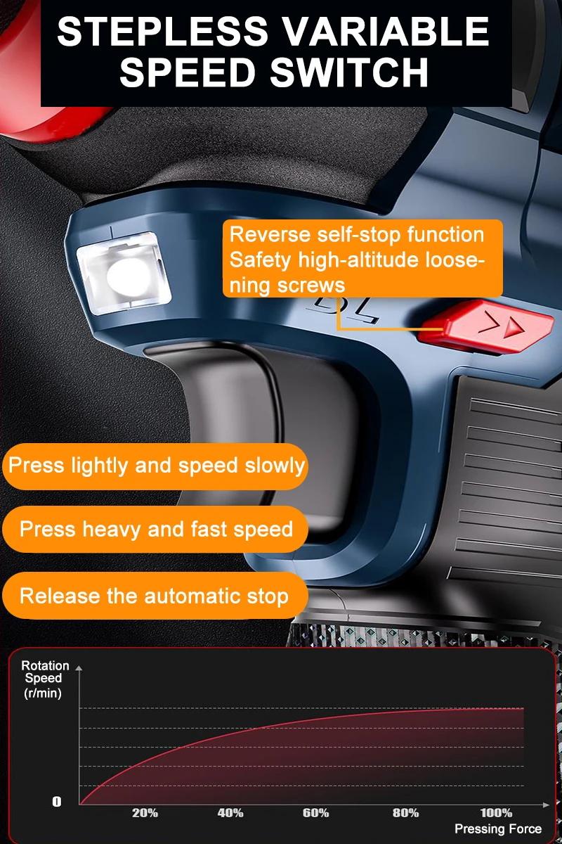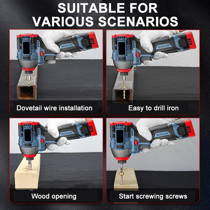 200N.m 16.8V Brushless Electric Drill Screwdriver Impact Driver Cordless Drill Household Multifunction Hit Power Tools