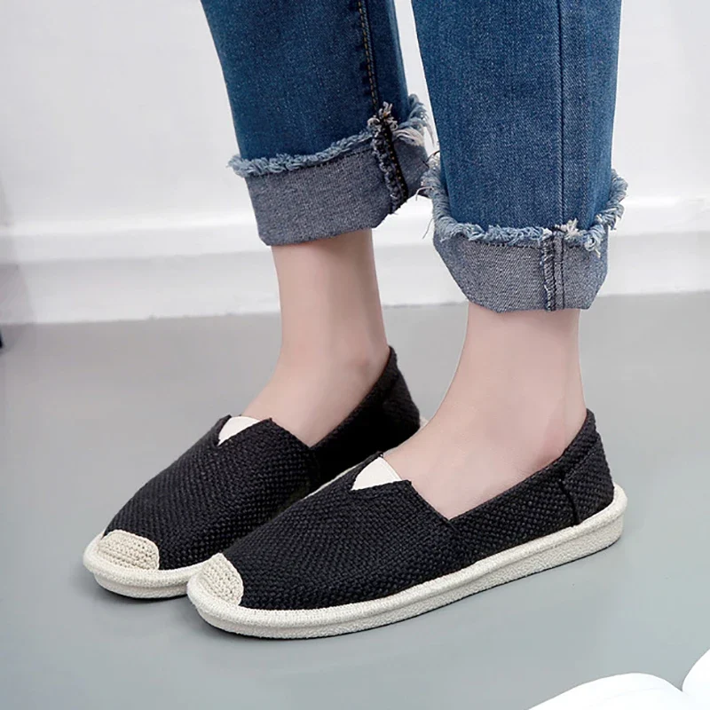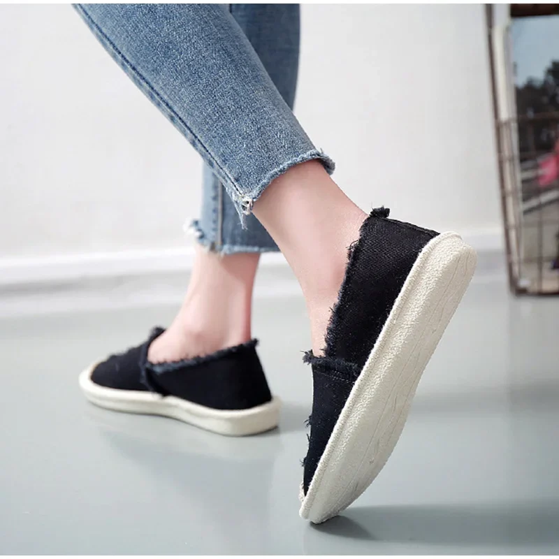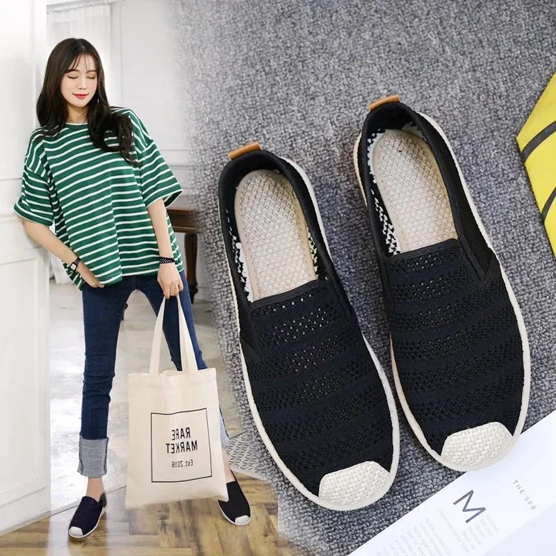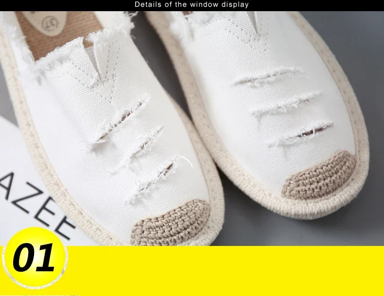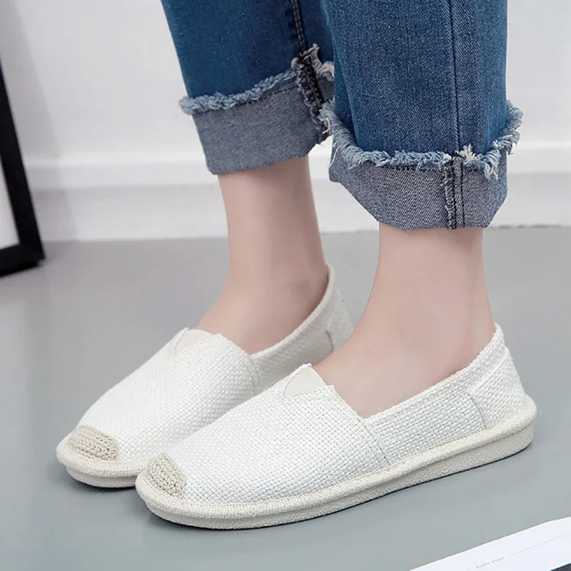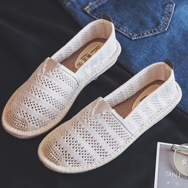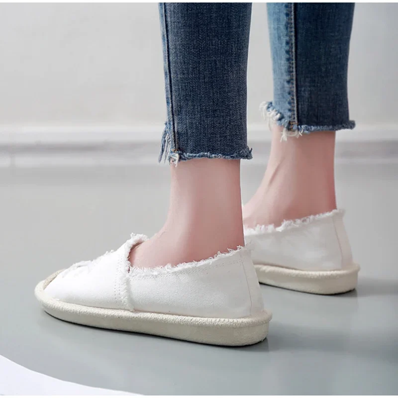 2023 Ladies Casual Comfort Ripped Slip On Lazy Shoes Female Womens Flat Slip On Canvas Summer Strap Loafers Straw Espadrilles