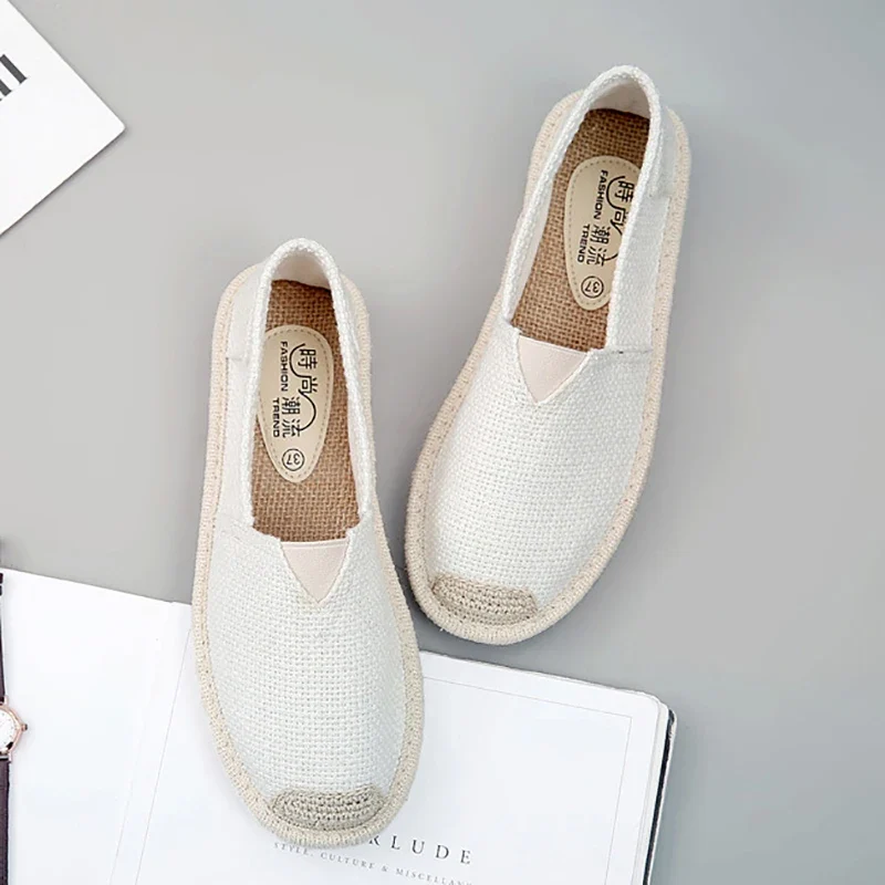 - Womens Flat Slip On Canvas: Summer Strap Loafers Straw