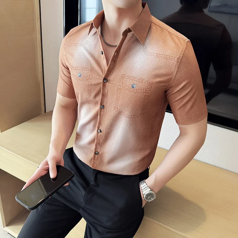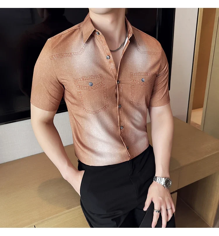 2025 Summer New Elastic Cotton Denim Shirt Men’s Long Sleeved Denim Shirt Men’s Casual Slim Fit Men’s Designer Clothing 4XL-M