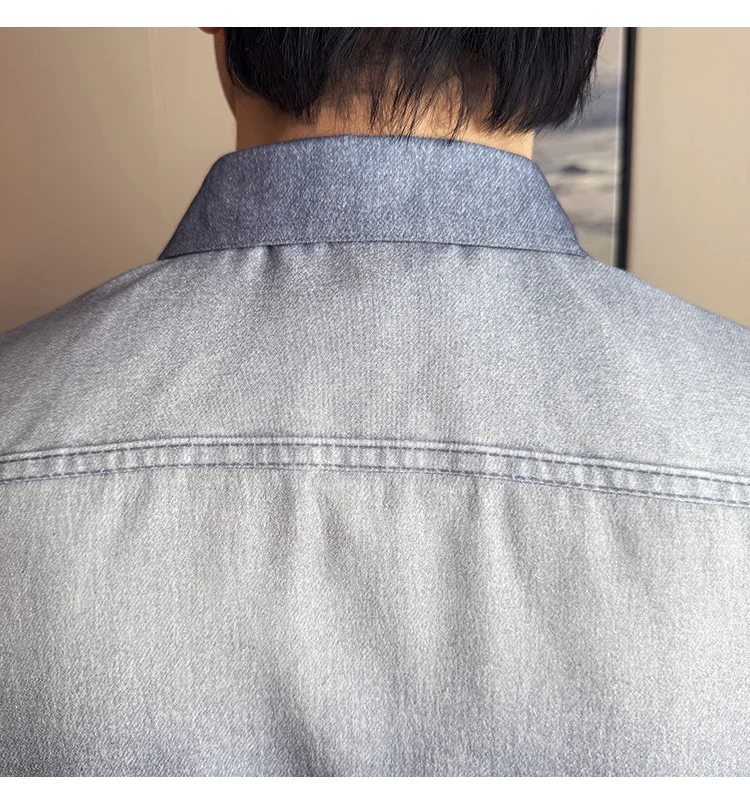 Men Vintage Washed Shirt Tide Hip Hop Dirty Dye Short Denim Shirt Turn-down Collar Casual Male Workwear Shirt Jacket