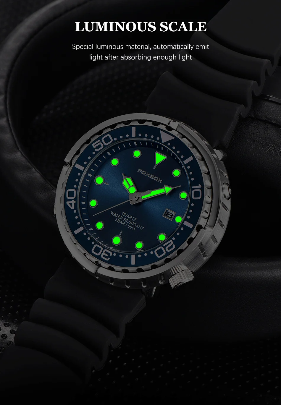 - Feature: Back Light,Shock Resistant,Luminous,Auto Date,Complete Calendar,DIVER,Water-Resistance,swim,Luminous Hands