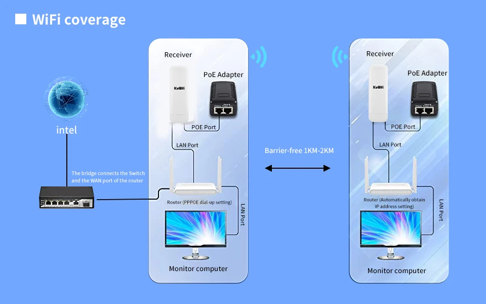 1.KuWfi High power 300Mbps outdoor cpe router provides you larger wireless range and enhance mobility of usage