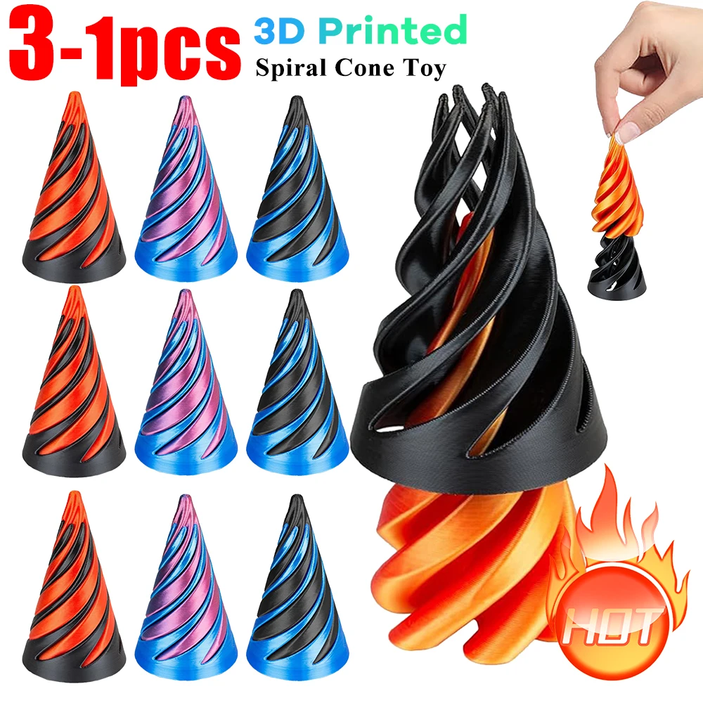 3-1pc 3D Printed Spiral Cone Toy Impossible Pyramid Passthrough Sculpture Pass Through Pyramid Fidget Anti Stress Toy for Kids A