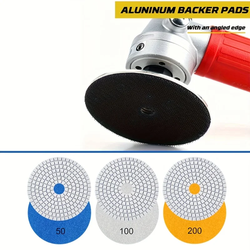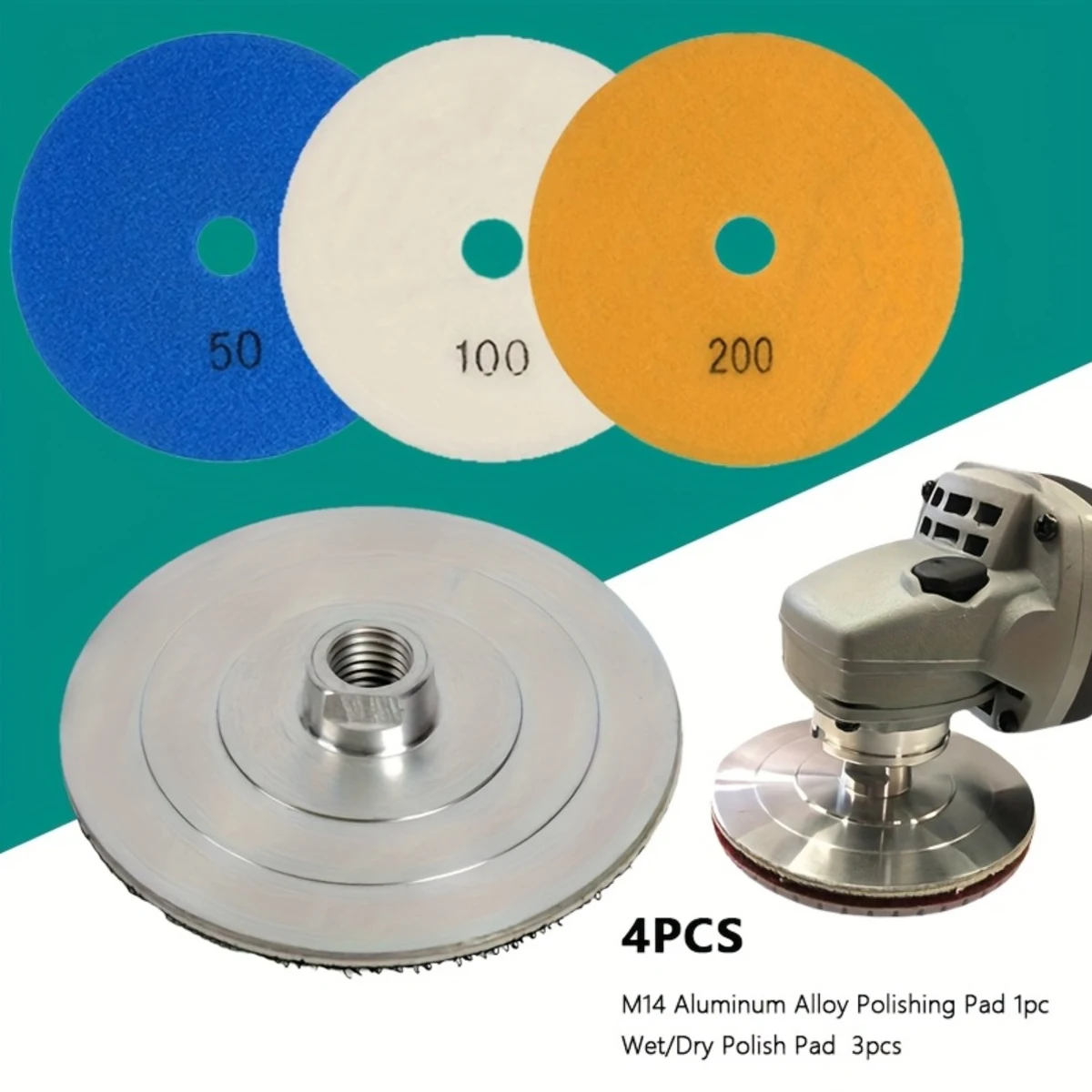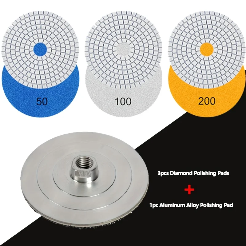 3pcs 100mm/4inch Diamond Polishing Pads with M14 Aluminum Alloy Backer Wet/Dry Polish Pad Kit for Granite Marble Concrete Stone
