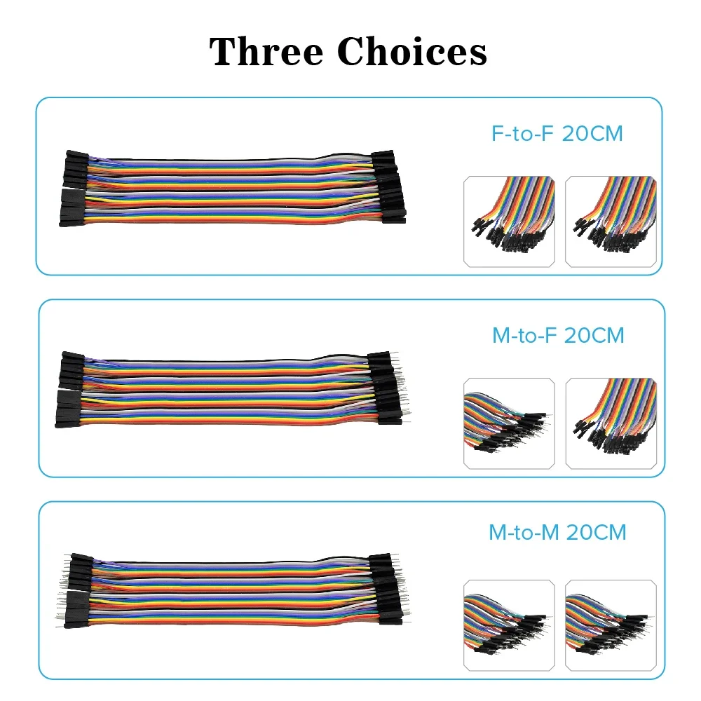 أنت تشاهد الآن:3PCS Keyestudio Dupont line jumper wire Dupont cable 20cm M-F &M-M & F-F for Arduino Projects
