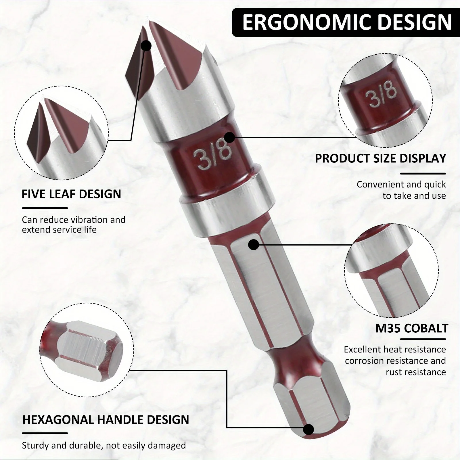 [Wide Application] This hexagonal shank countersunk drill bit set is suitable for plywood, metal, softwood, hardwood, fiberglass, soft steel, copper, aluminum, and more