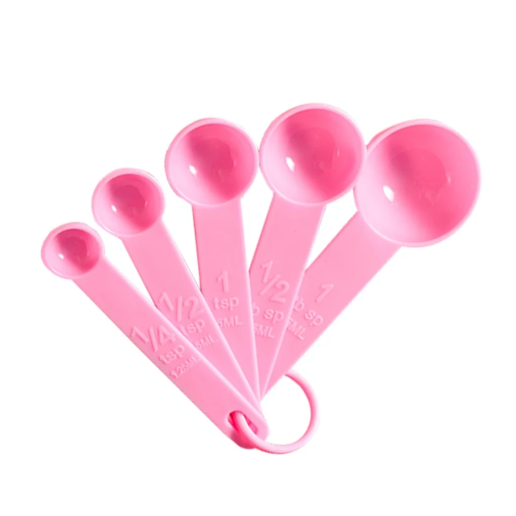 The plastic measuring spoon set is easy to wash, and the handle has a live buckle design for easy storage.
