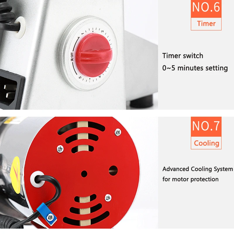 3, grinding speed, grinding time of traditional Chinese medicine is generally not more than 3 minutes, breaking time less than 3 seconds, the timing switch, can set the grinding time, grinding complete automatic shutdown, use more convenient.