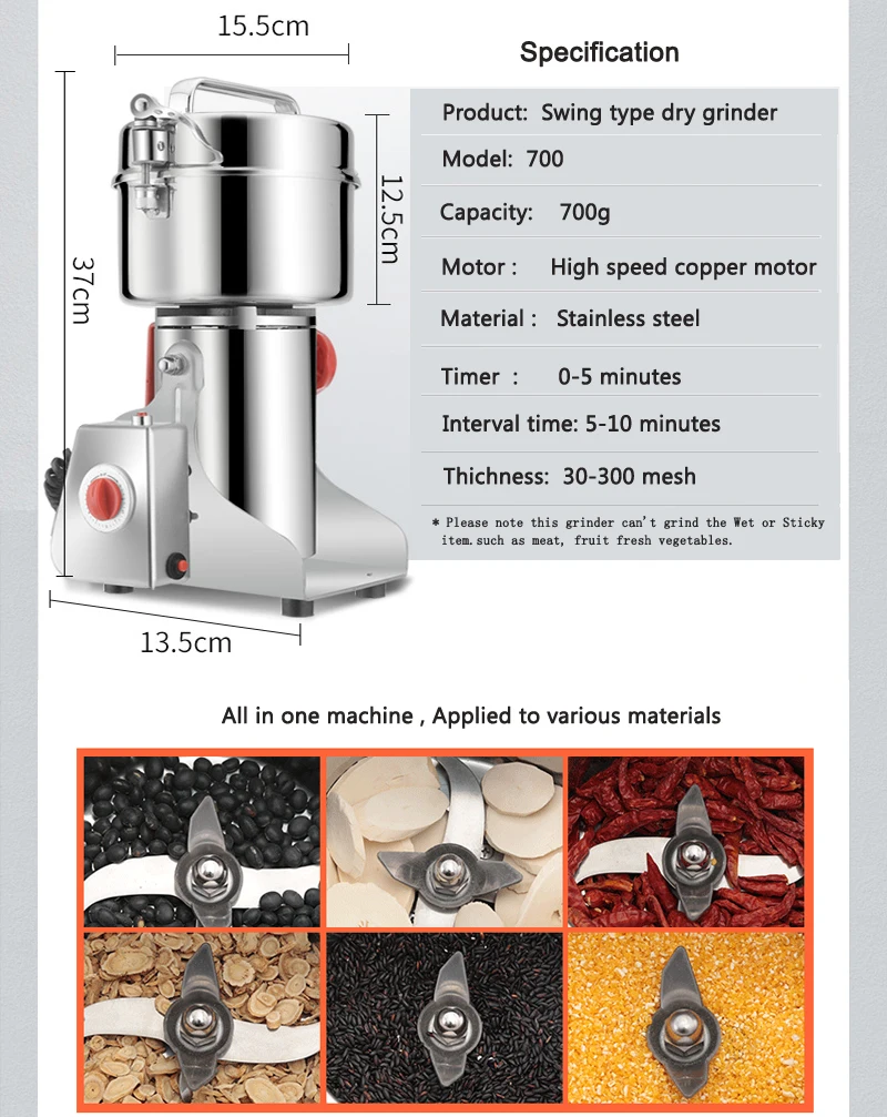 Product Name: 700/800g grams of quick open cover swing type high speed grinder