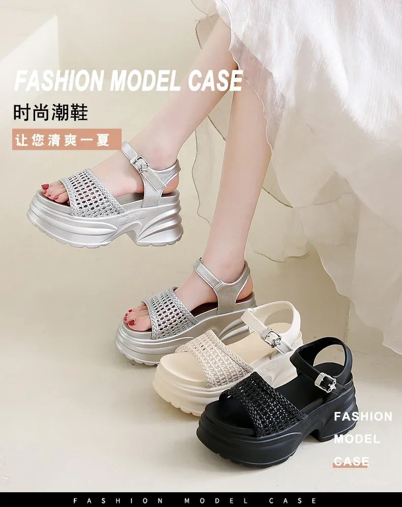 8.5CM High Heels Women Slippers Chunky Pumps Ladies Strap Slides Luxury Platform Beach Women Shoes Flip Flop 2024 Summer sandal