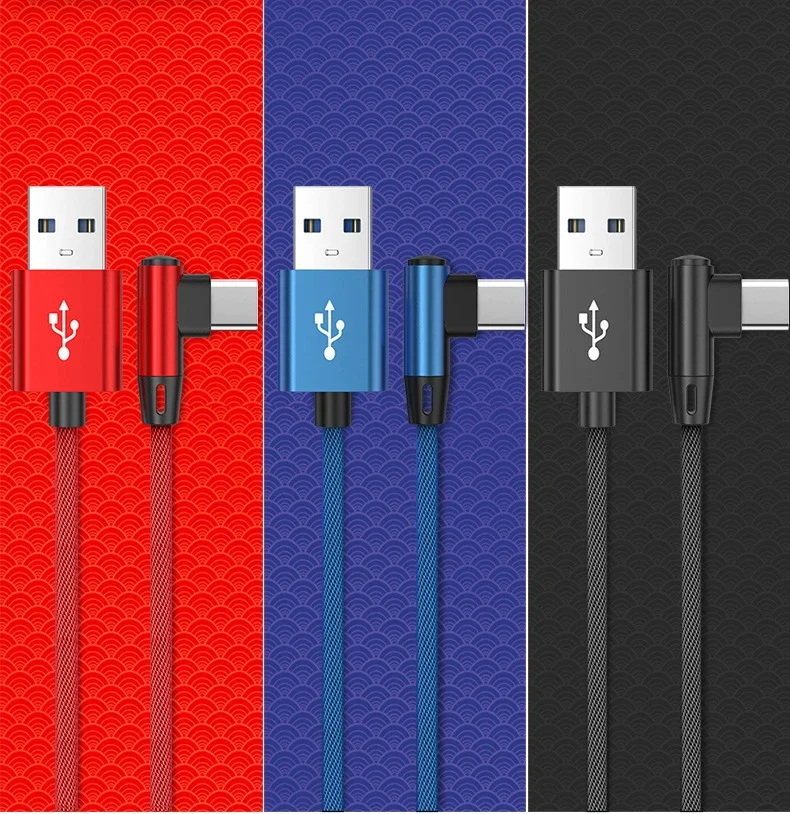 90 Degree Elbow USB Type C Cable for Xiaomi Redmi Note 9s 8 Pro QC 3.0 USB C Cable Fast Charging for Samsung S20 S9 Type C Cable