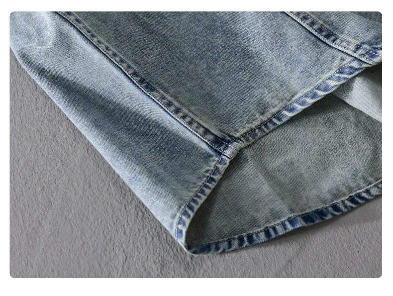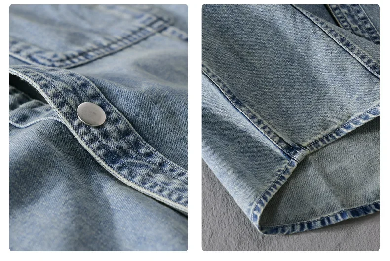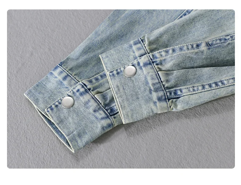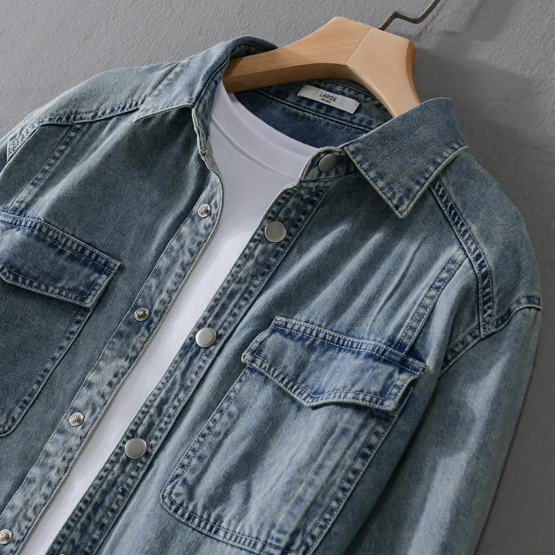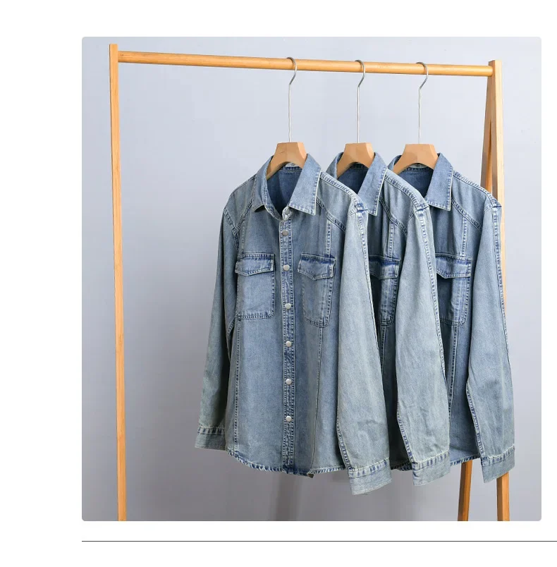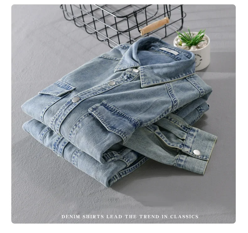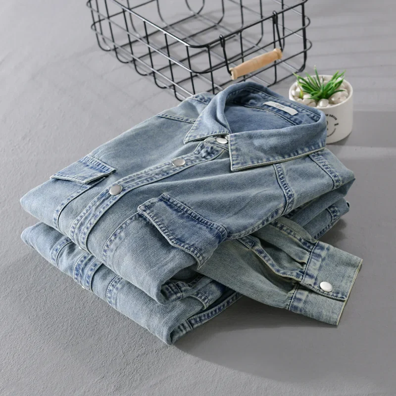 9491 Winter Fall Fashion Men’s Denim Shirt Dual Pocket Long Sleeve Soid Color Vintage Simple Casual Loose Blouse Streetwear Tops