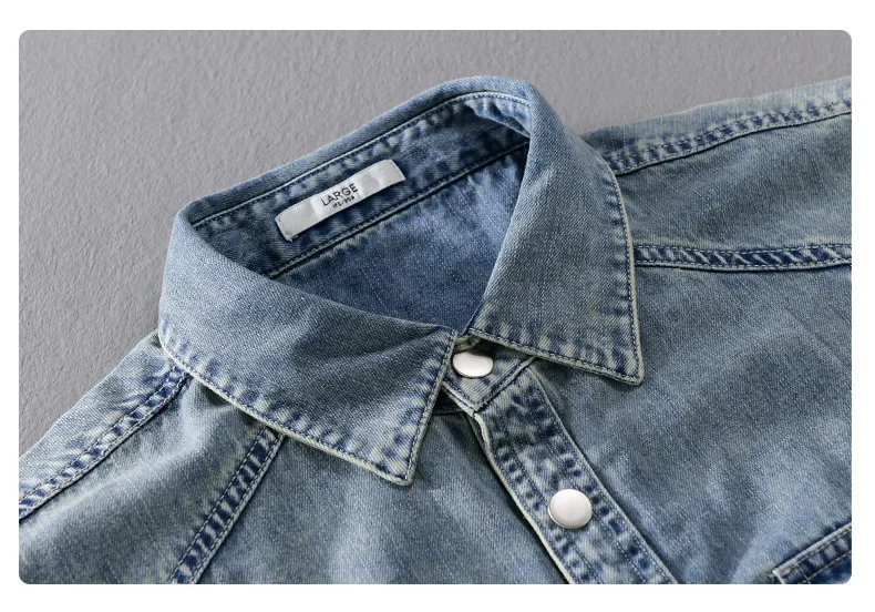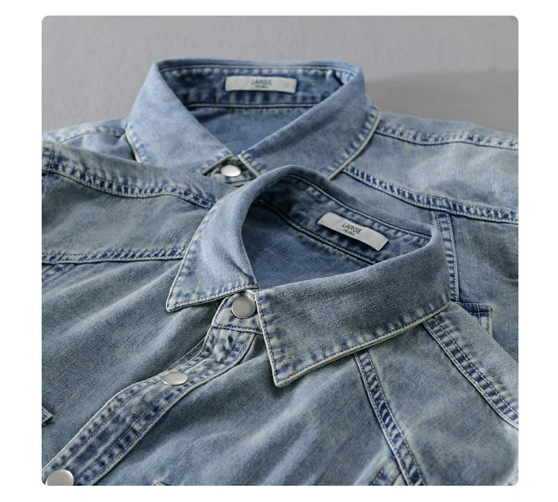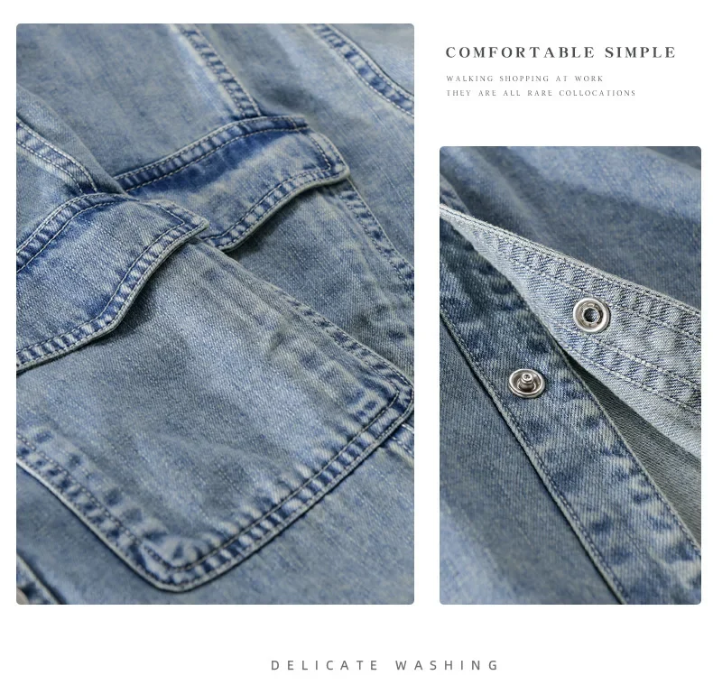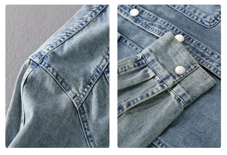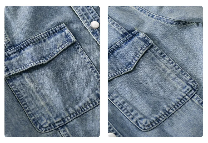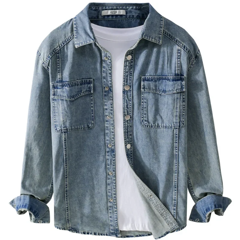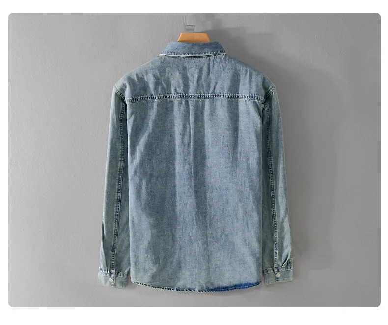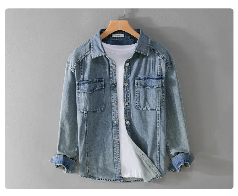 9491 Winter Fall Fashion Men’s Denim Shirt Dual Pocket Long Sleeve Soid Color Vintage Simple Casual Loose Blouse Streetwear Tops LFFMHMT