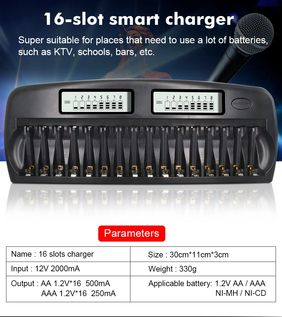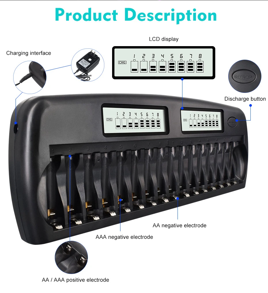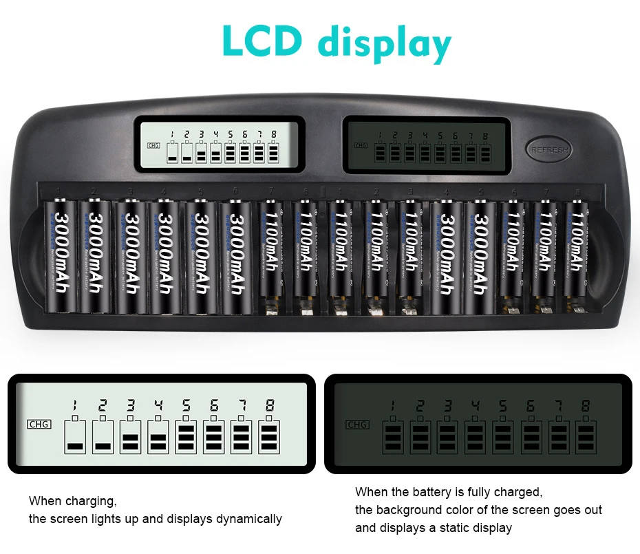 • Model Number: 16 Slots LCD AA/AAA NIMH Ni CD Smart Charger for 1.2V