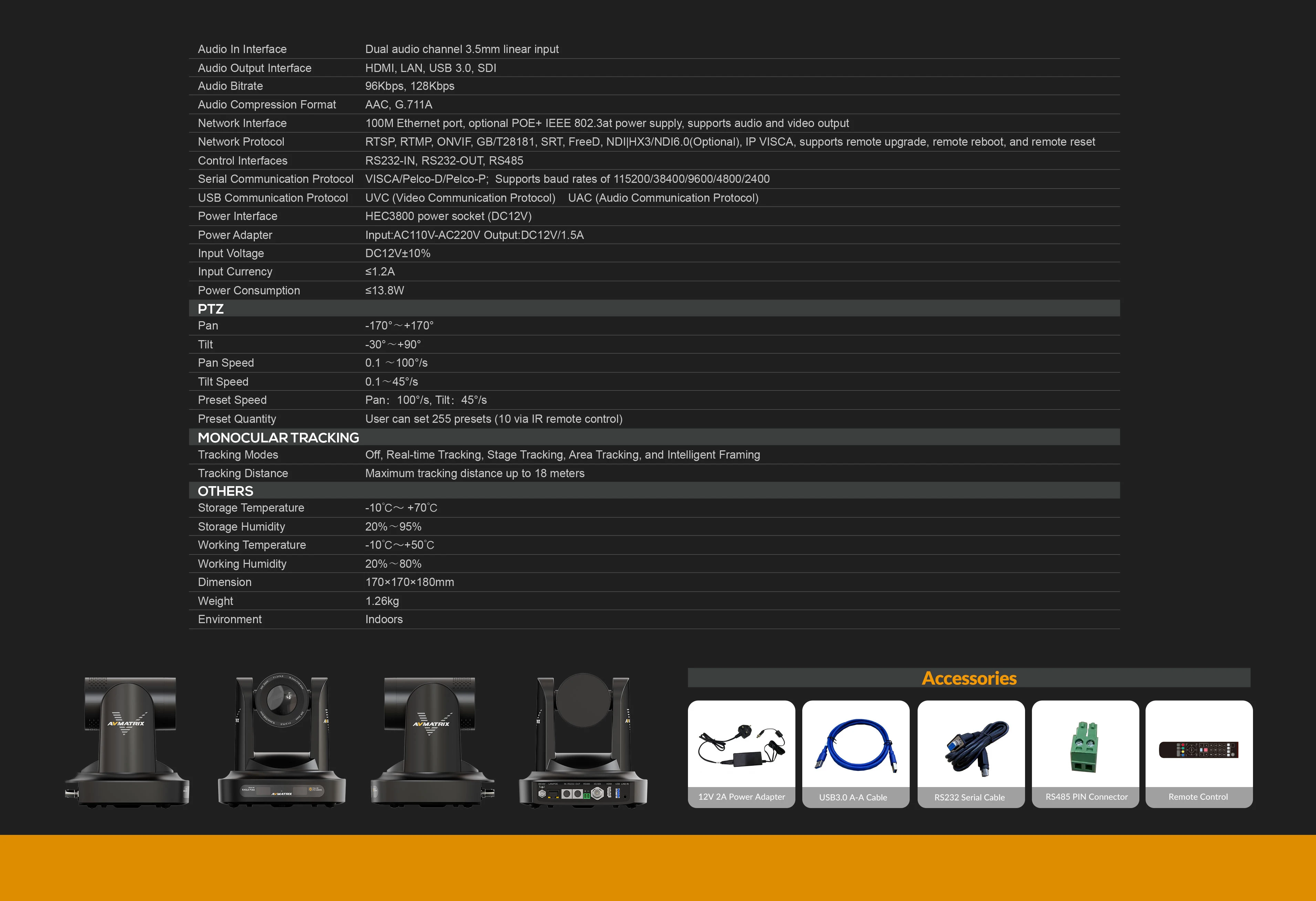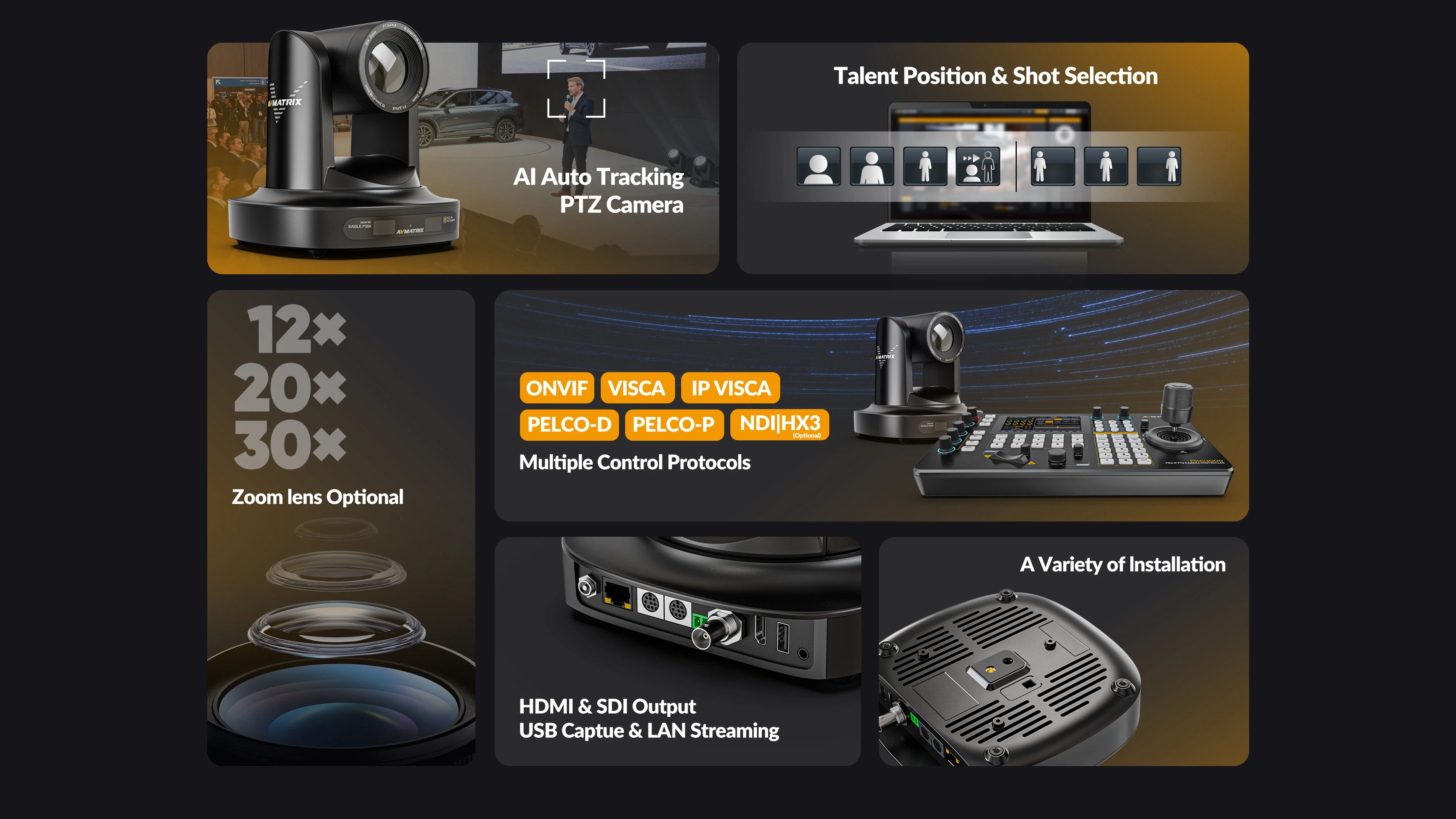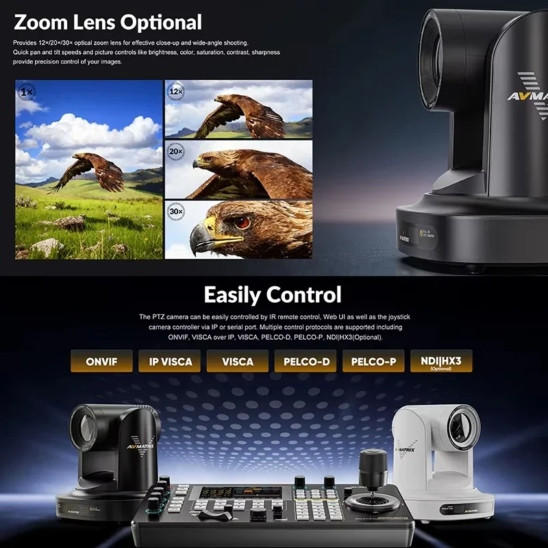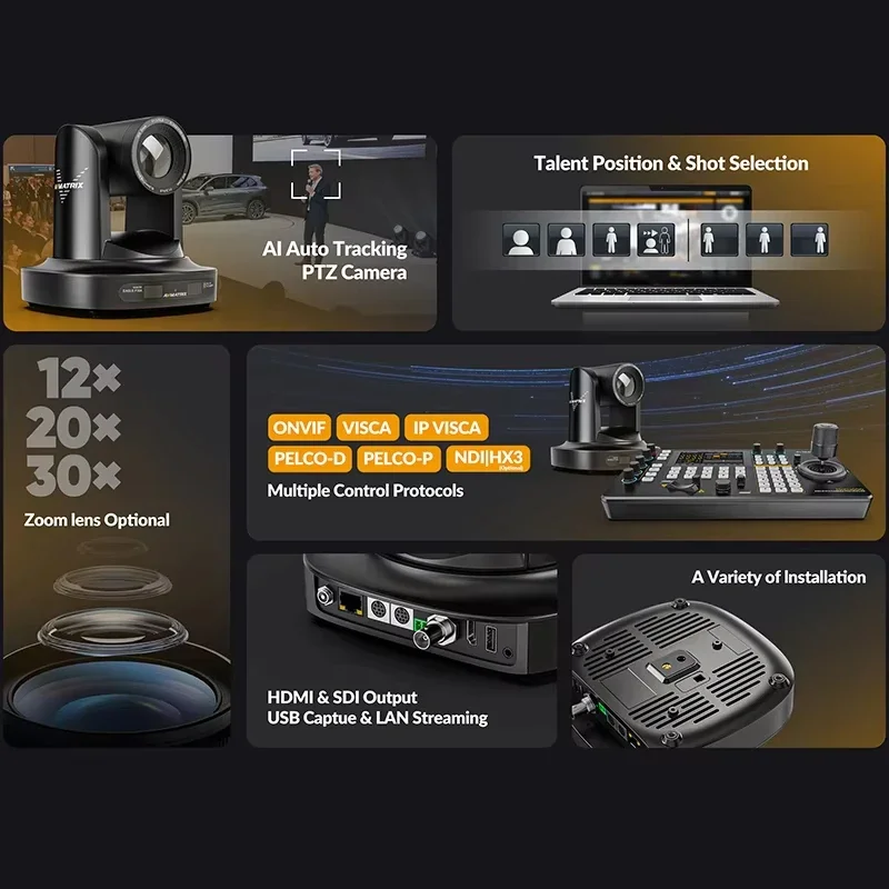 AVMATRIX Eagle P12A new AI Tracking FHD PTZ Camera Support HDMI & SDI Dual Outputs 12xOptical Zoom Lens with POE function