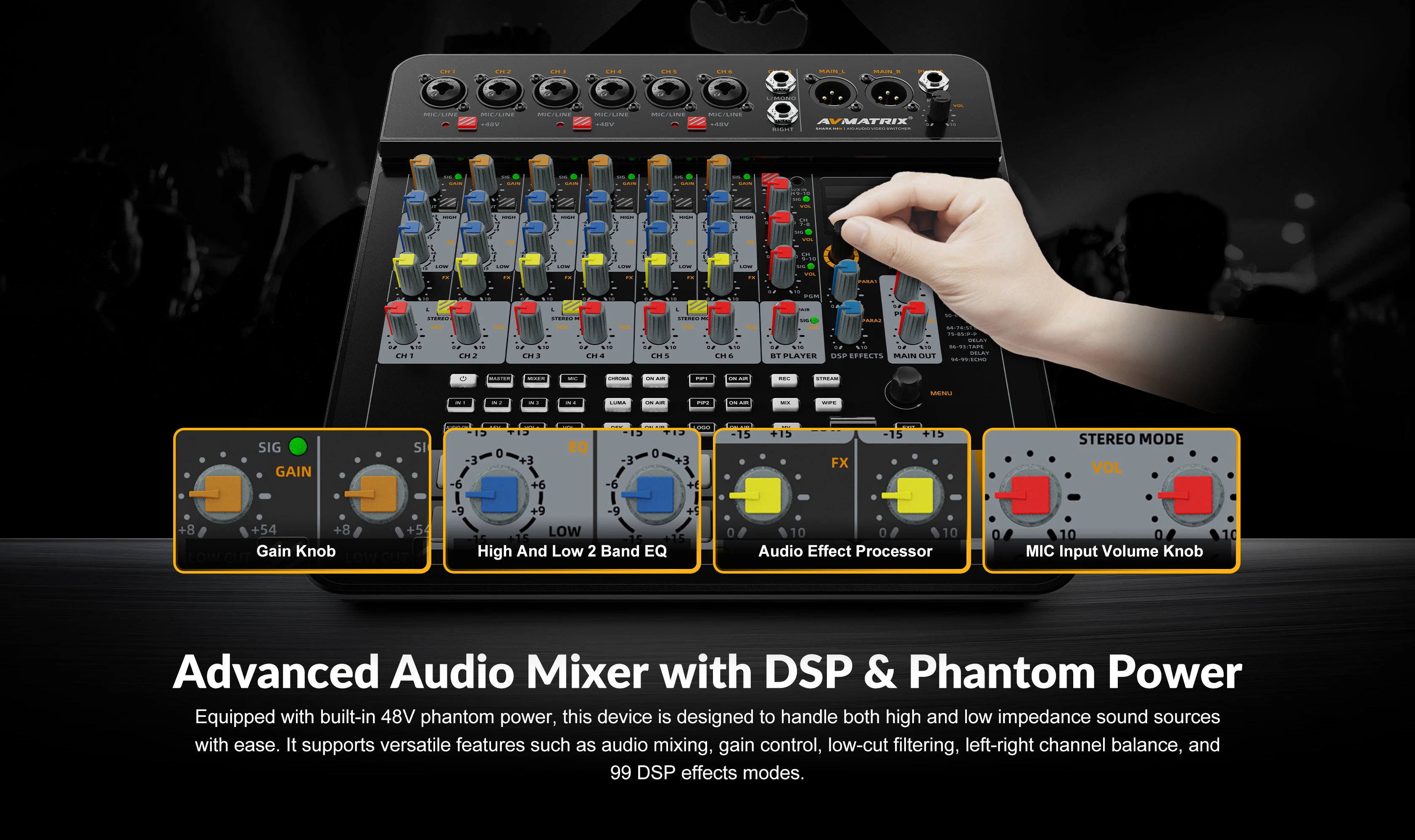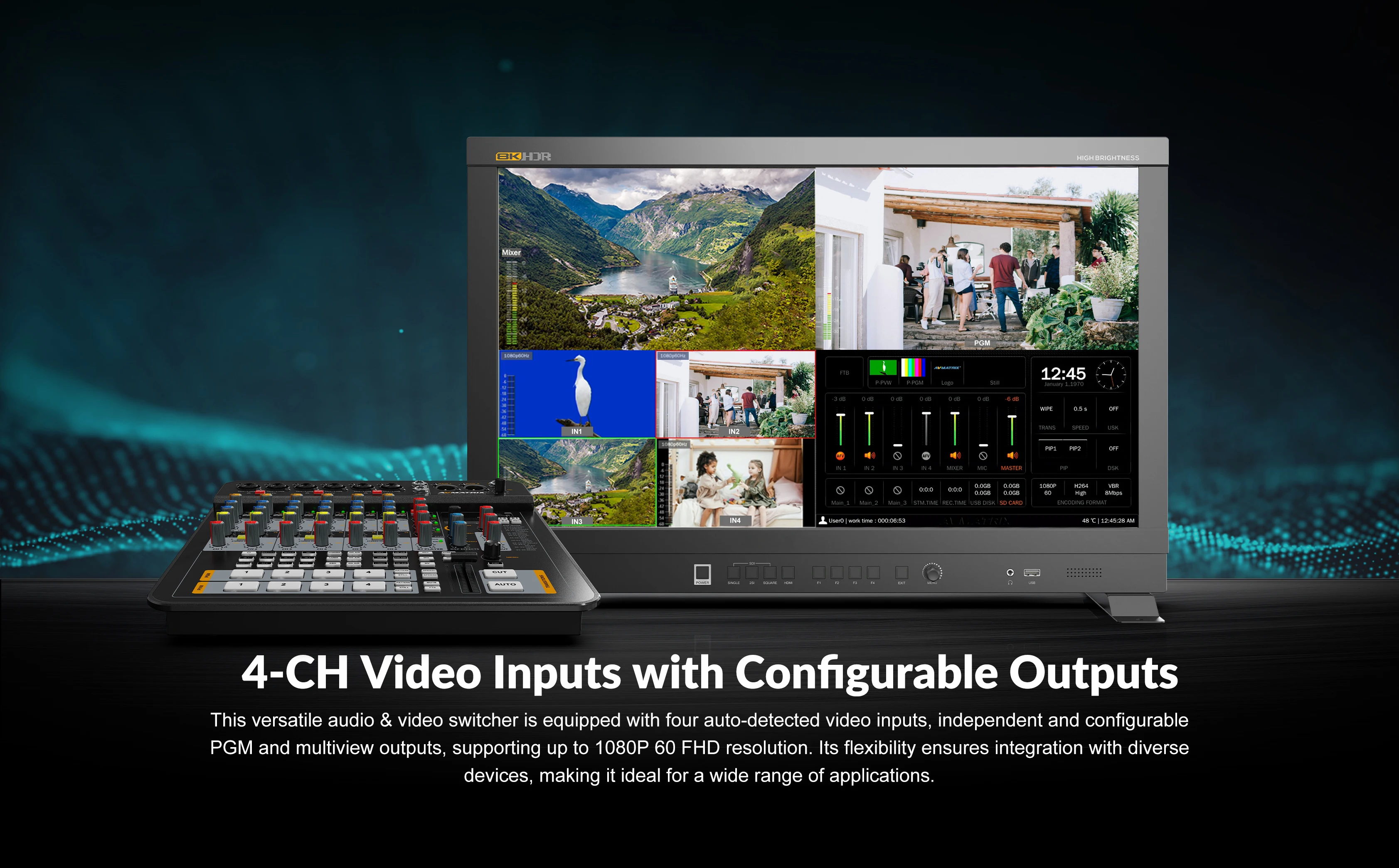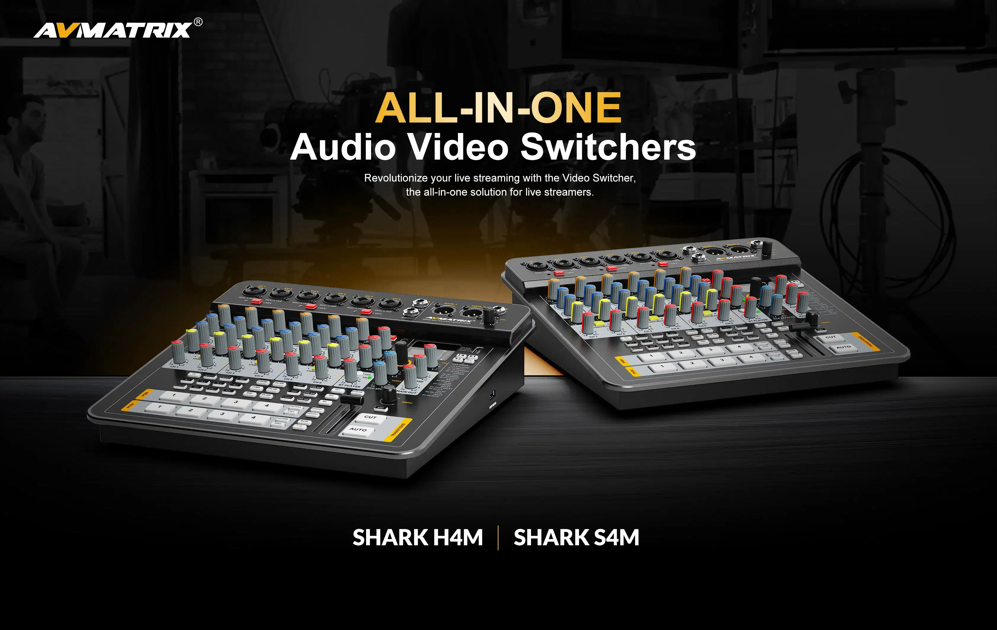 AVMATRIX SHARK S4M SHARK H4M All-In-One 4-Channel SDI HDMI- Audio & Video Switcher ·with Video Inputs Confgurable Qutputs