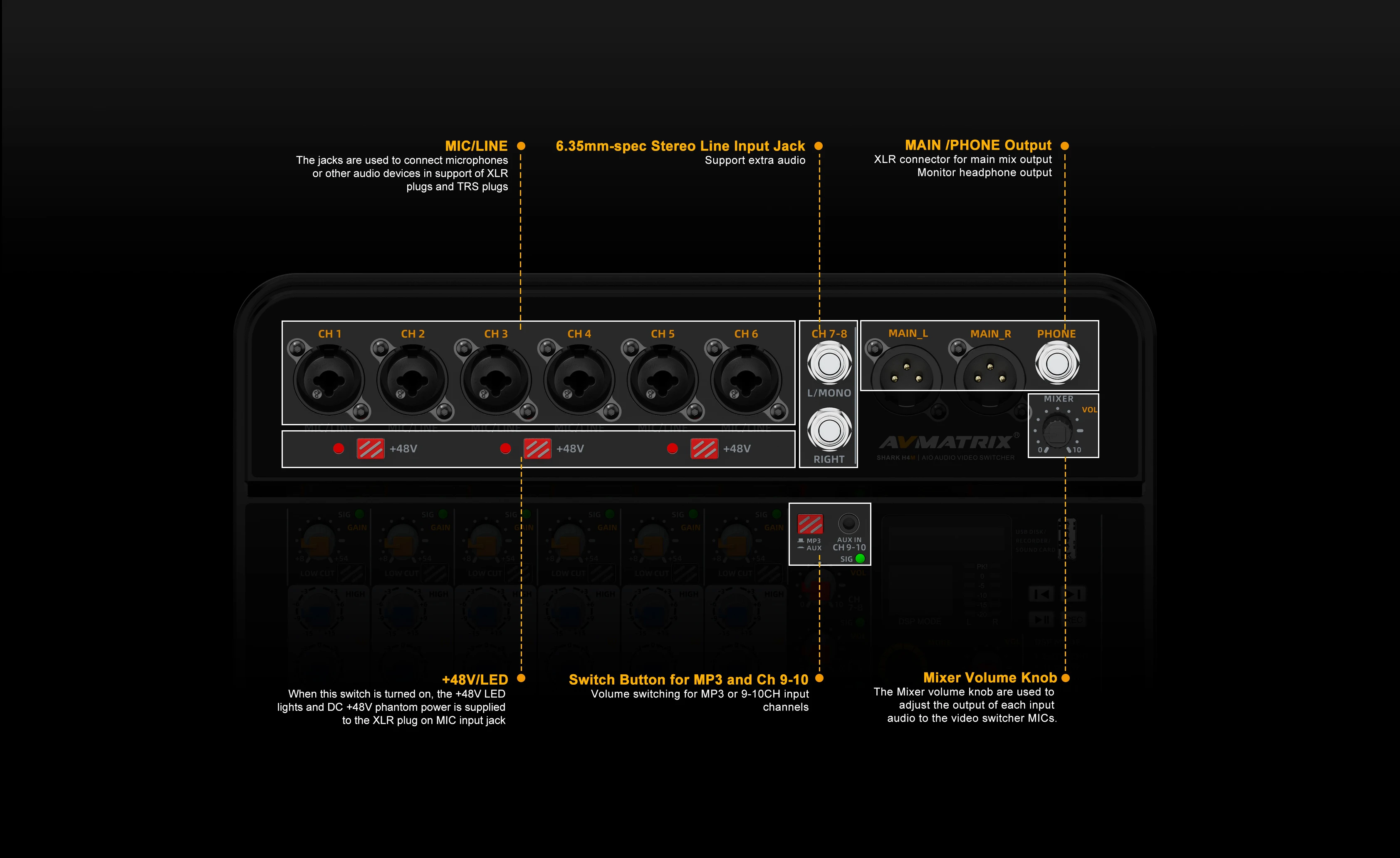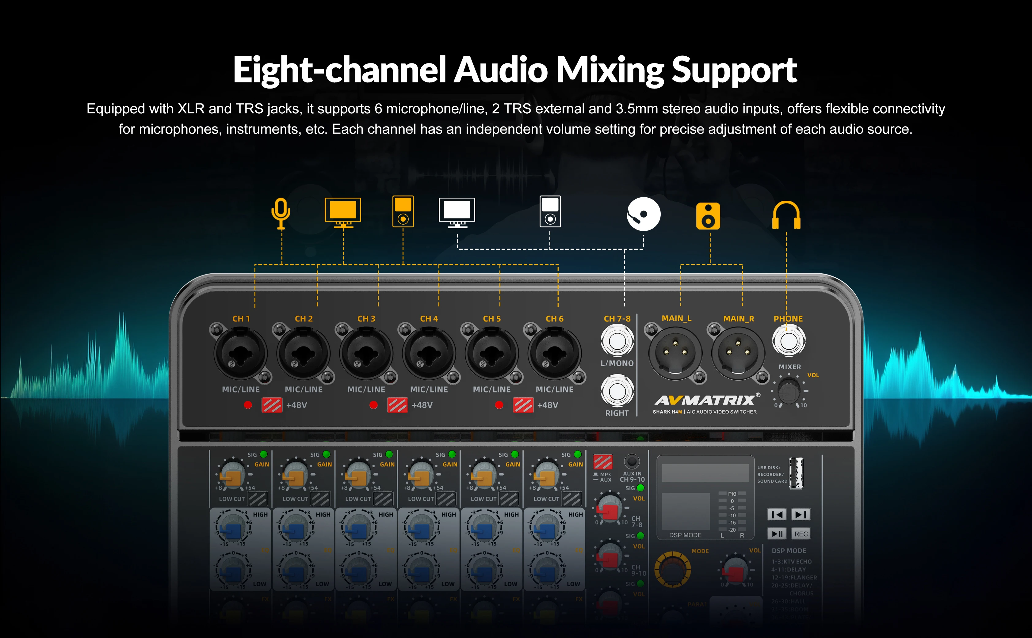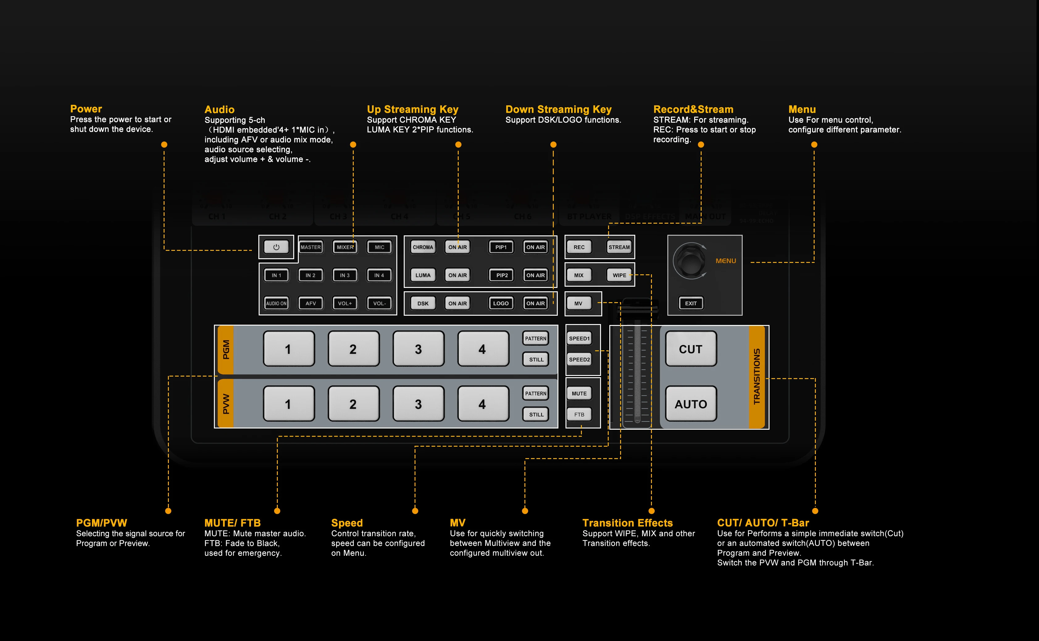 AVMATRIX SHARK S4M SHARK H4M All-In-One 4-Channel SDI HDMI- Audio & Video Switcher ·with Video Inputs Confgurable Qutputs