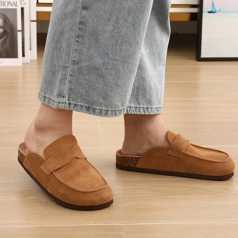 Bebealy Fashion Women Clogs Slippers New Suede Clogs Slippers Cork Footbed Beach Slippers Classic Men Mules With Arch Support