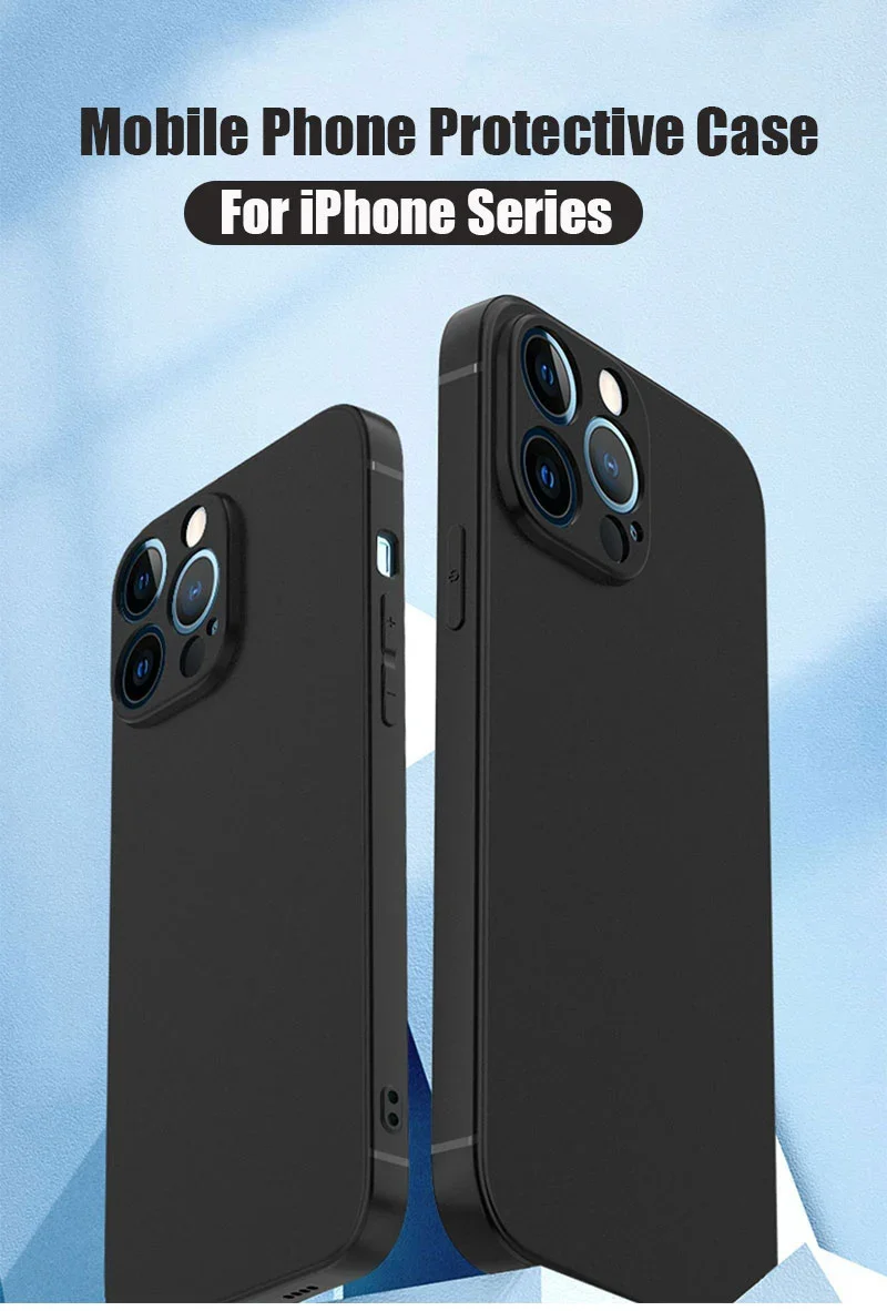 Black Phone Case For iPhone 17 Pro Max 17 Air 16E Matte Soft Back Cover For iPhone 11 12 13 14 15 16 Pro Max Plus 12 Mini Case