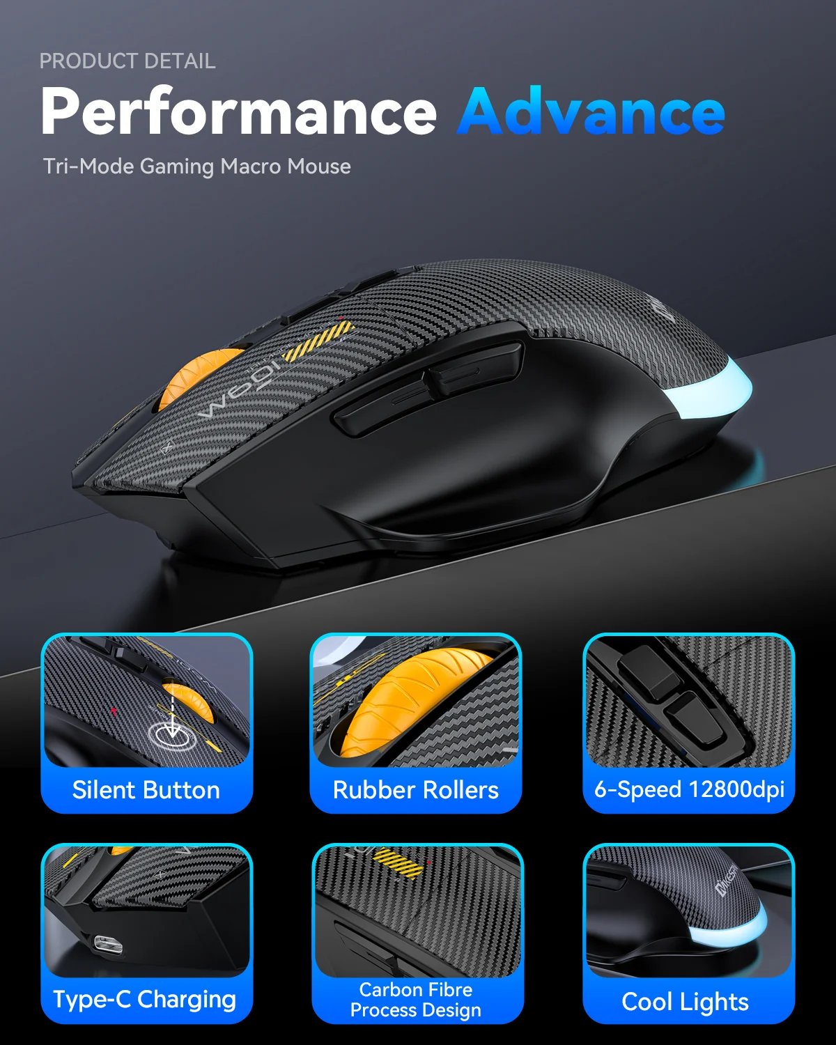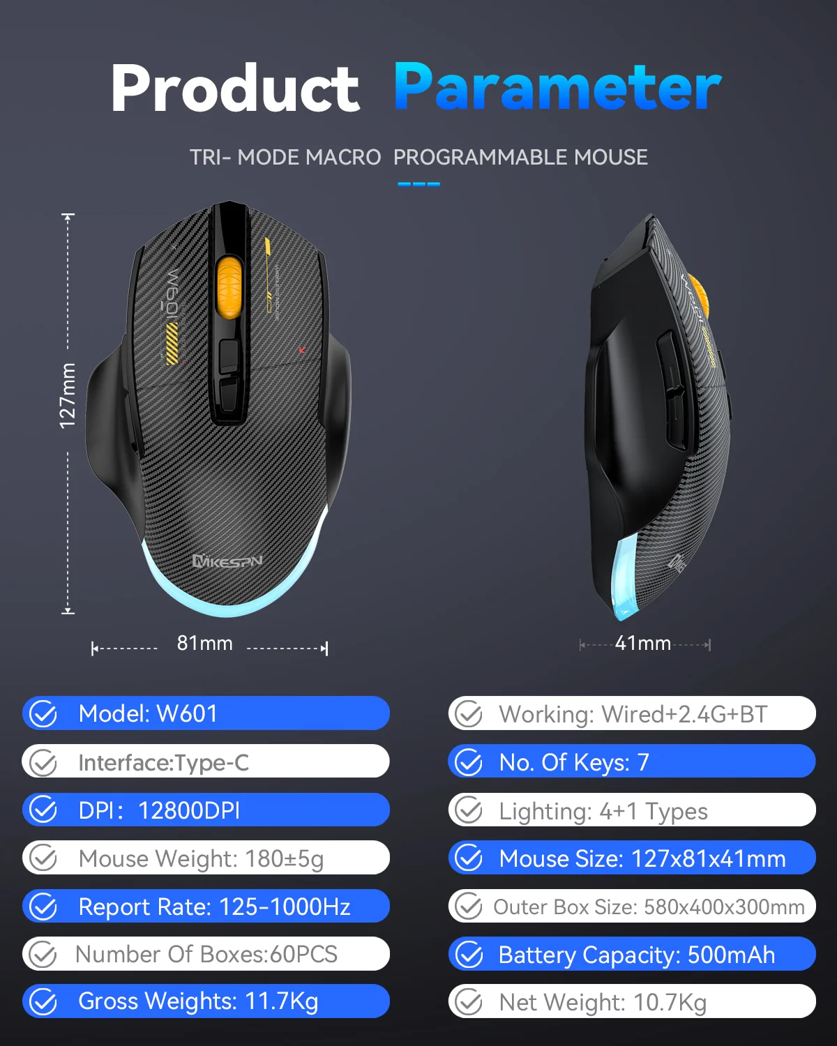 SXS-W601 is an 7-key macro defined wireless dual-mode gaming mouse that is plug and play.